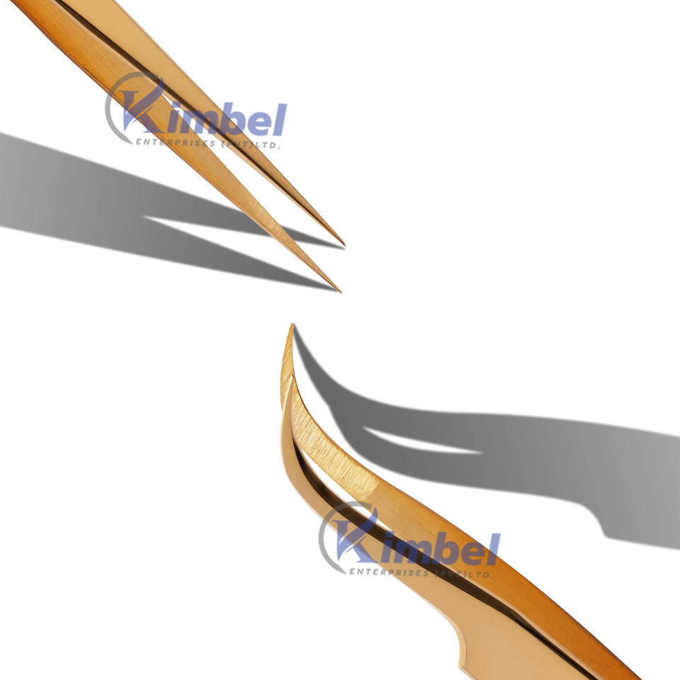 ชุดแหนบต่อขนตามืออาชีพชุด2ชิ้นปริมาณที่แม่นยำและแหนบขนตาตรงเพื่อให้ได้สีทองที่สวยงาม