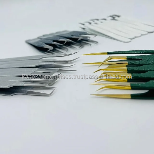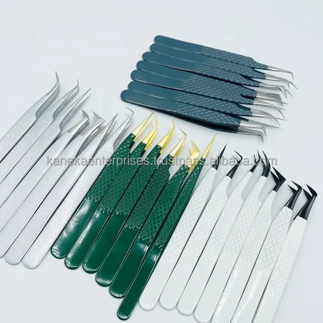 แหนบต่อขนตาแบบมืออาชีพ สแตนเลส สีขาว สีเขียว ทนทาน แม่นยำ รับทำฉลากสินค้า ขายส่ง