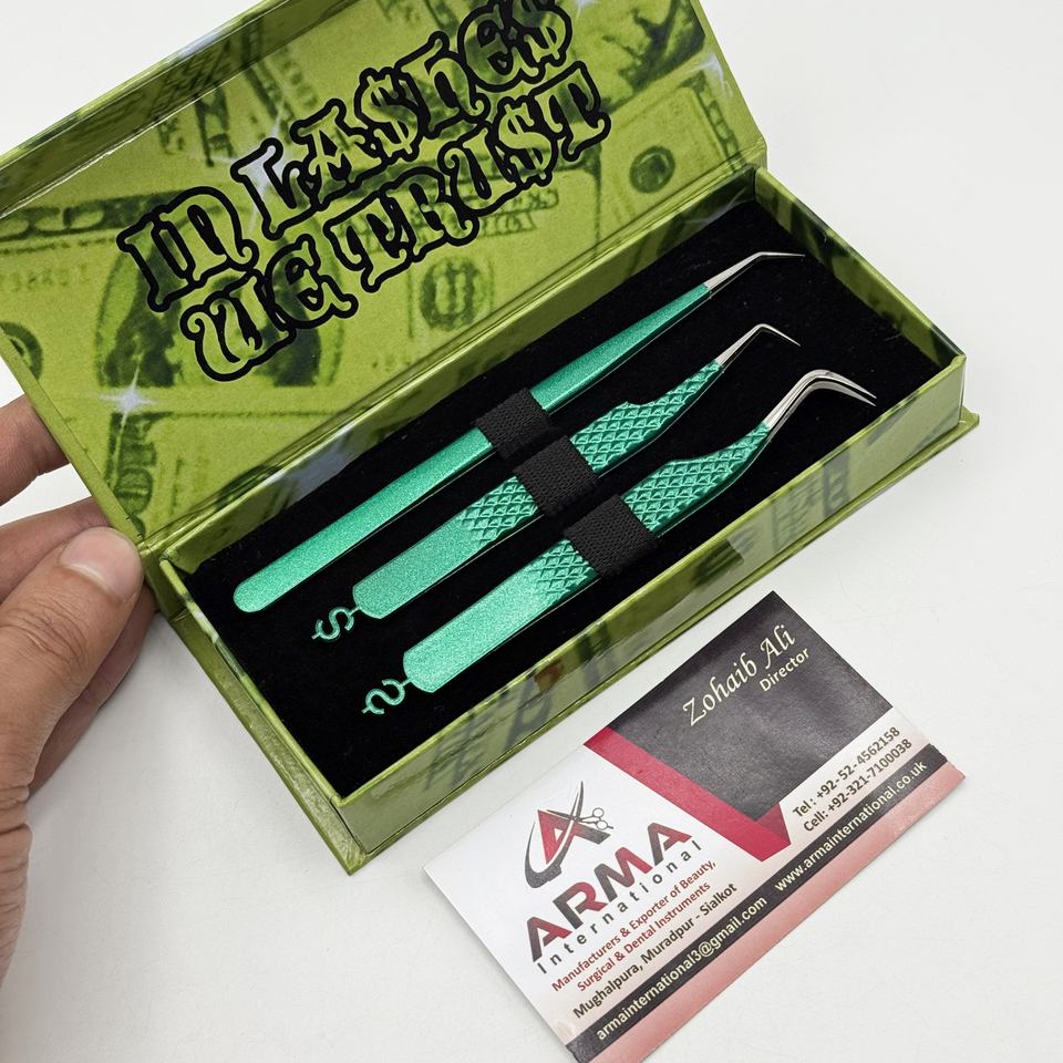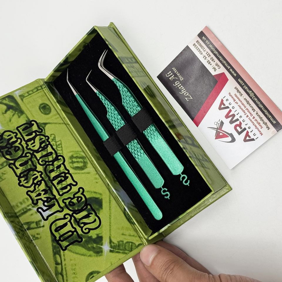 แหนบต่อขนตาแบบมืออาชีพ พร้อมกล่องการ์ดแบบกำหนดเอง แหนบปลายแหลมที่ยั่งยืนทนทาน พร้อมฉลากส่วนตัว