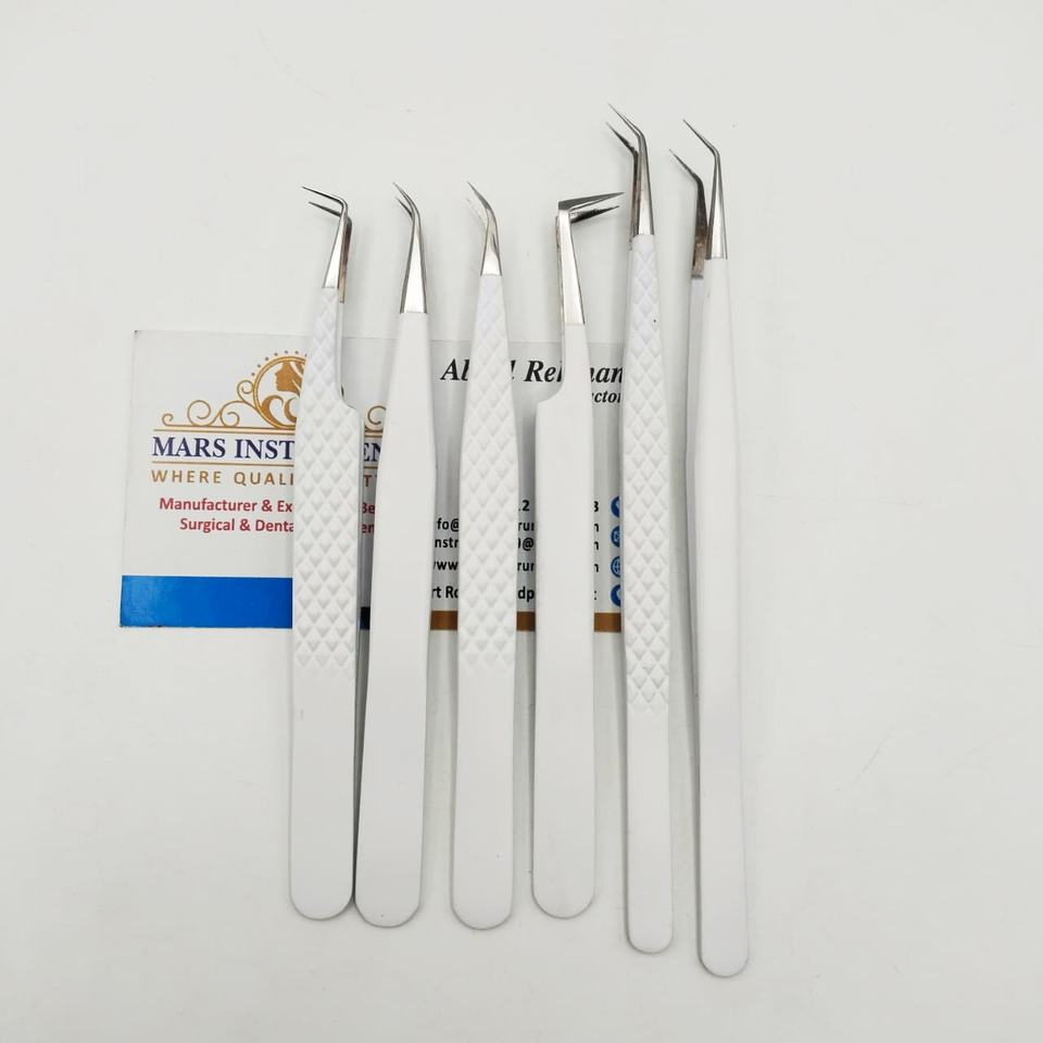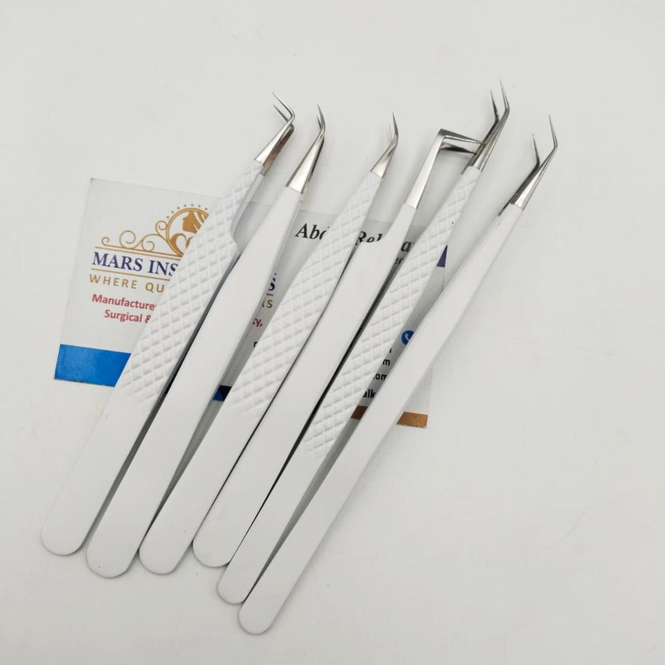 แหนบต่อขนตาแบบมืออาชีพ สีขาวเคลือบปลายแหลม