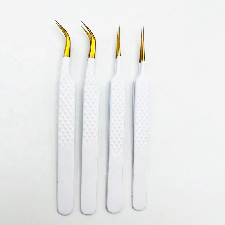 แหนบต่อขนตาแบบมืออาชีพ NOMEX INTERNATIONAL รุ่น NMX-ET-125 สีขาวทอง ด้ามจับเพชร ทำจากสแตนเลสแท้ ปลายแหลมโค้งรูปตัว J