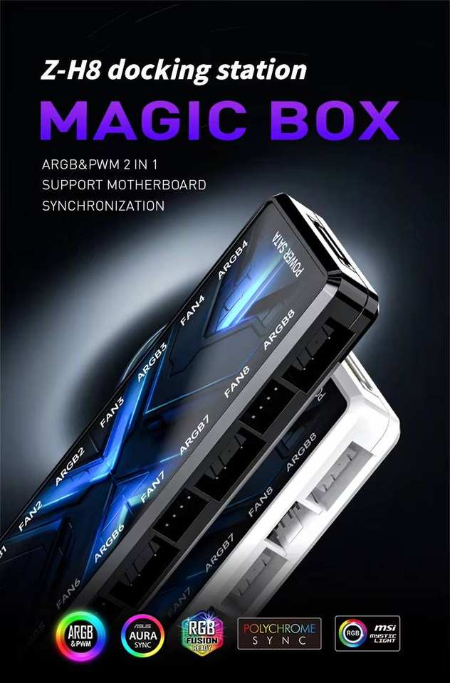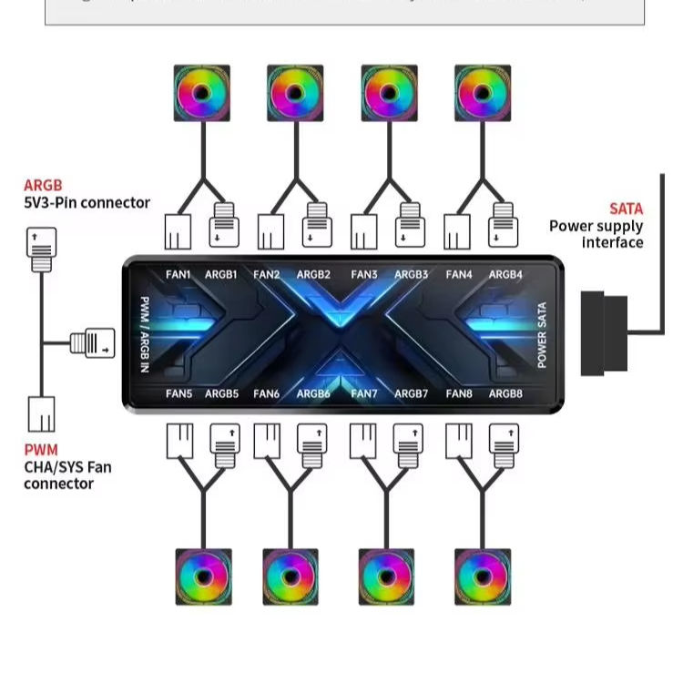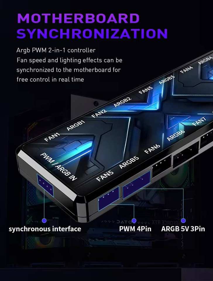 คอนโทรลเลอร์ ARGB 2-in-1 ระดับมืออาชีพ มีสินค้าในสต็อก พัดลมคอมพิวเตอร์สำหรับเล่นเกม เปลี่ยนสีได้ คอนโทรลเลอร์ฮับพัดลมระบายความร้อนพีซี พัดลม RGB