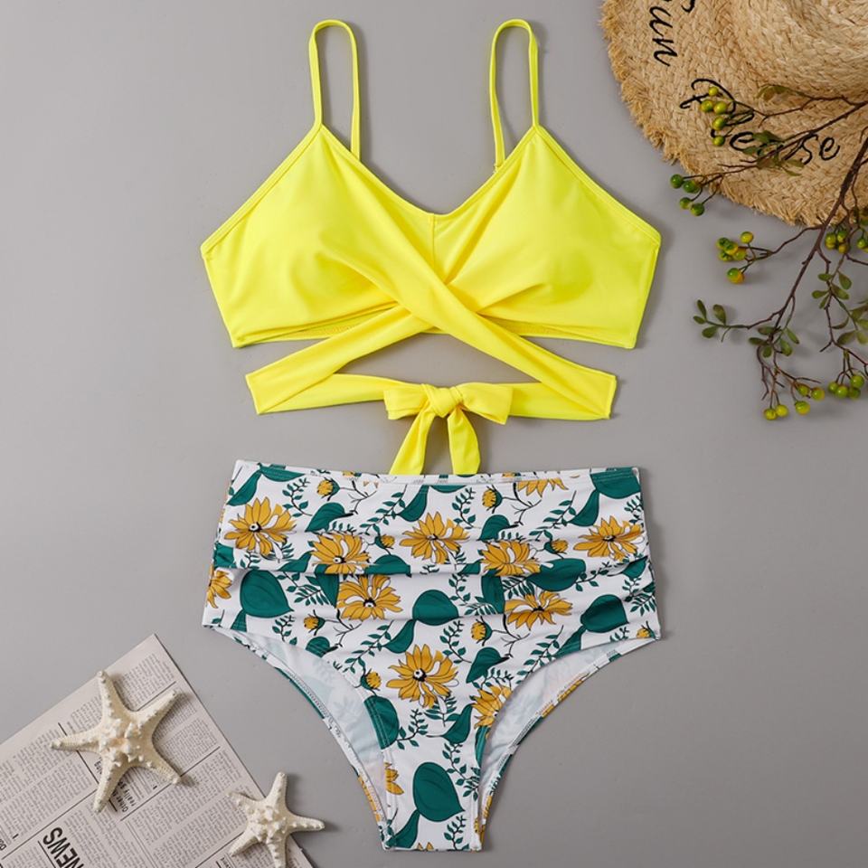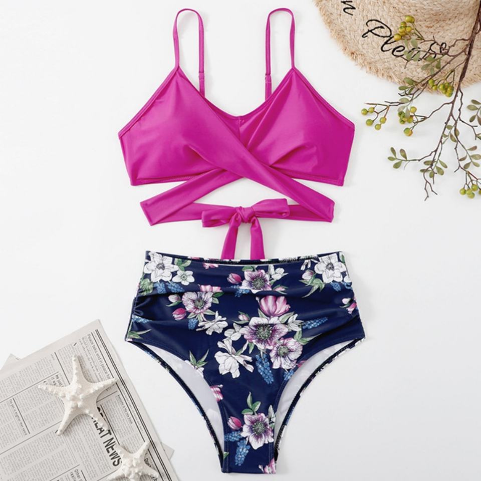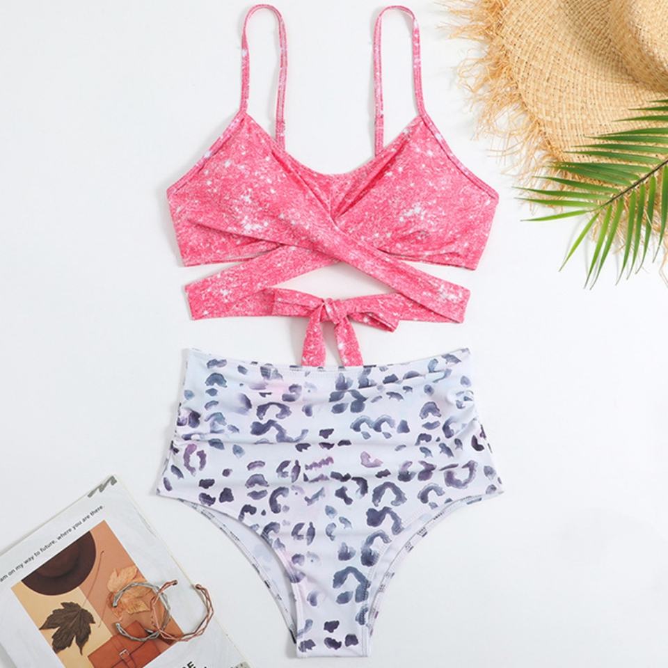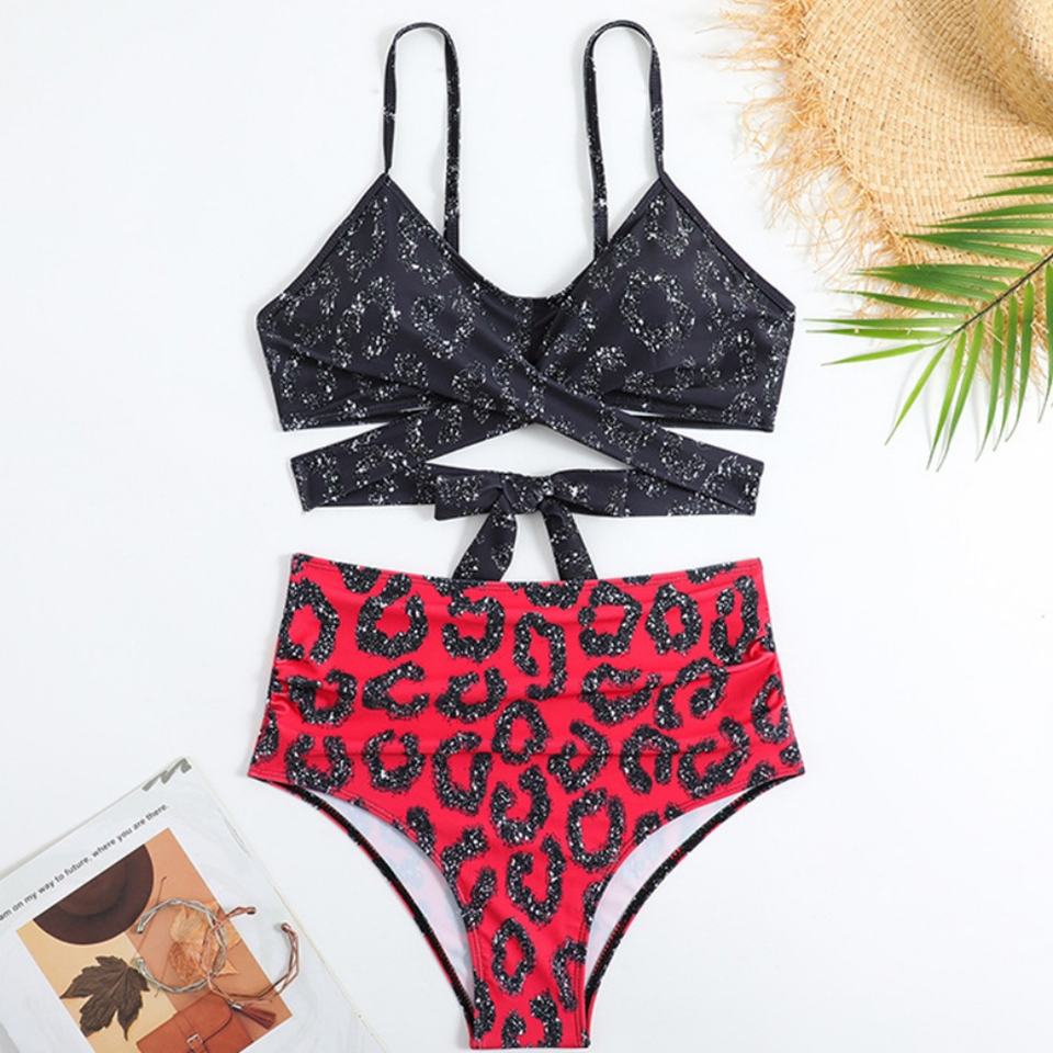 ชุดว่ายน้ำบิกินี่สองชิ้นสุดหรูจากโรงงานสำหรับผู้หญิง ชุดชายหาดแบบดันทรง ลายเสือดาว ลายสก็อต ลายเพสลีย์
