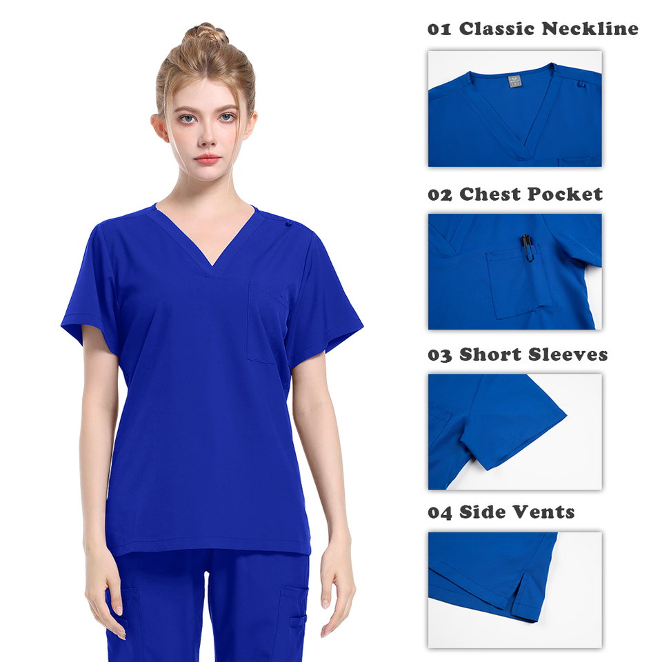 ชุดเครื่องแบบพยาบาลชุดยูนิฟอร์มคอวีสำหรับขัดชุดเครื่องแบบพยาบาลเซ็กซี่แบบมืออาชีพ