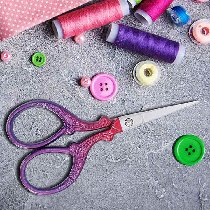 กรรไกรสแตนเลสกรรไกรสำหรับงานปักที่มีด้ามจับแฟนซีมืออาชีพ