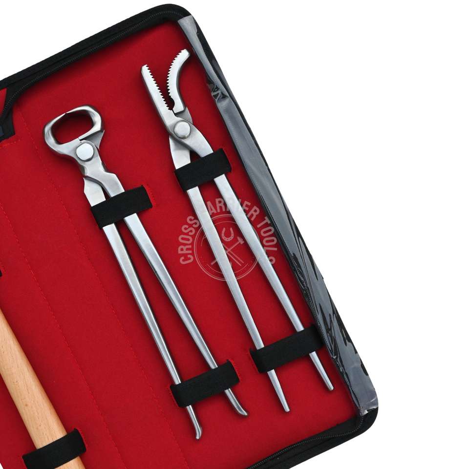 ชุดเครื่องมือช่างเกือกม้ามืออาชีพสำหรับตัดแต่งกีบม้า มีดตัดกีบโค้ง มีดตัดกีบขนาดใหญ่ คีมตัดกีบ ค้อนตอกตะปู