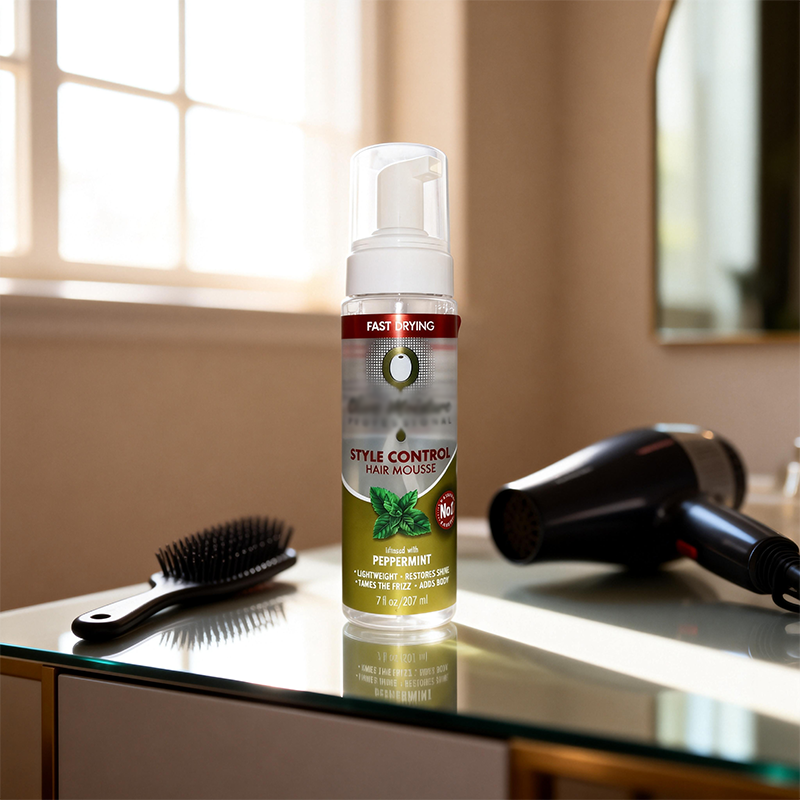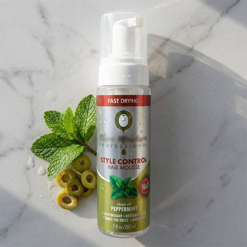 มูสจัดแต่งทรงผมแบบมืออาชีพ แห้งเร็ว ปราศจากสารก่อภูมิแพ้ ผสมน้ำมันมะกอกและเปปเปอร์มินต์ ให้ผมอยู่ทรง แข็งแรง ลดการชี้ฟู ให้ความรู้สึกสดชื่น