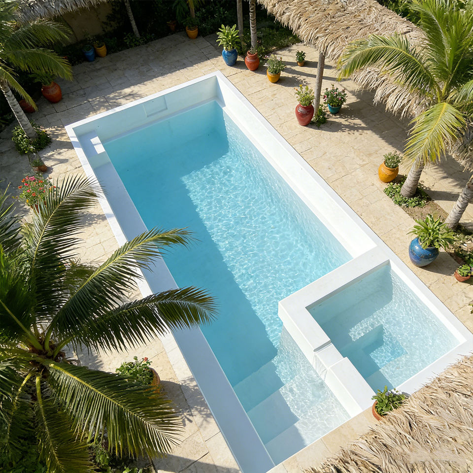 สระว่ายน้ำไฟเบอร์กลาสระดับมืออาชีพ พร้อมเคลือบป้องกันรังสียูวี ปรับแต่งขนาดได้ ติดตั้งรวดเร็ว เหมาะสำหรับใช้ในสวนหลังบ้าน