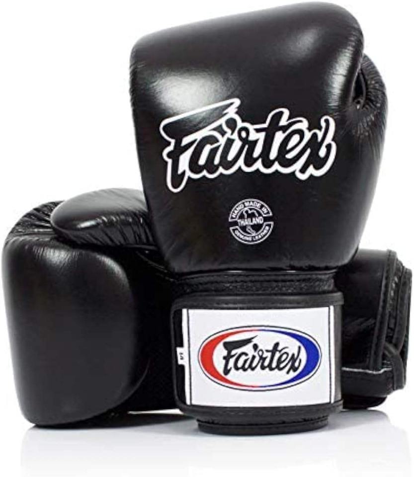 อุปกรณ์ต่อสู้ระดับมืออาชีพ หนังแท้คุณภาพพรีเมียม 100% ถุงมือชกมวย Fairtex สีดำแบบสั่งทำพิเศษ พร้อมแถบเวลโคร