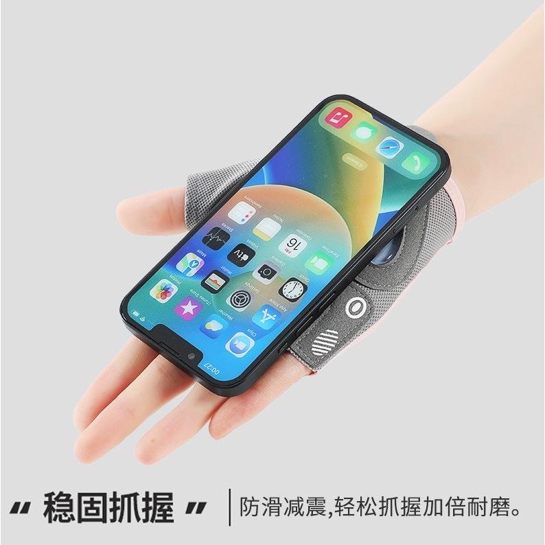 ถุงมือฟิตเนสมืออาชีพแบบครึ่งนิ้วสำหรับผู้หญิงพร้อมซิลิโคนยึดเกาะสำหรับออกกำลังกายปั่นจักรยานระบายอากาศได้ดีทนต่อการสึกหรอสีชมพูสีเทา