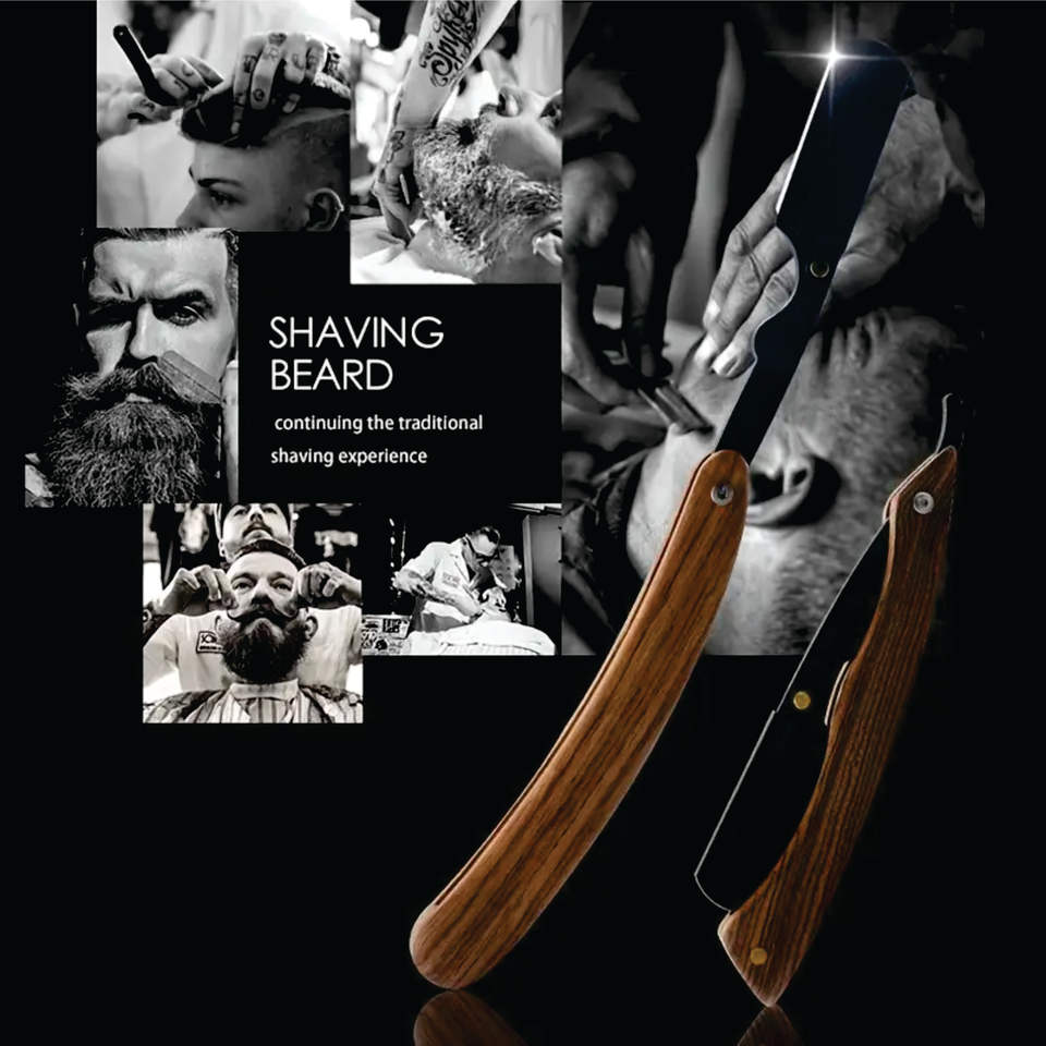 มีดโกนมืออาชีพพับได้มีด้ามจับไม้สีดำและสีน้ำตาลแดงดีไซน์กะทัดรัดและทนทานสำหรับการแต่งขนอย่างแม่นยำ