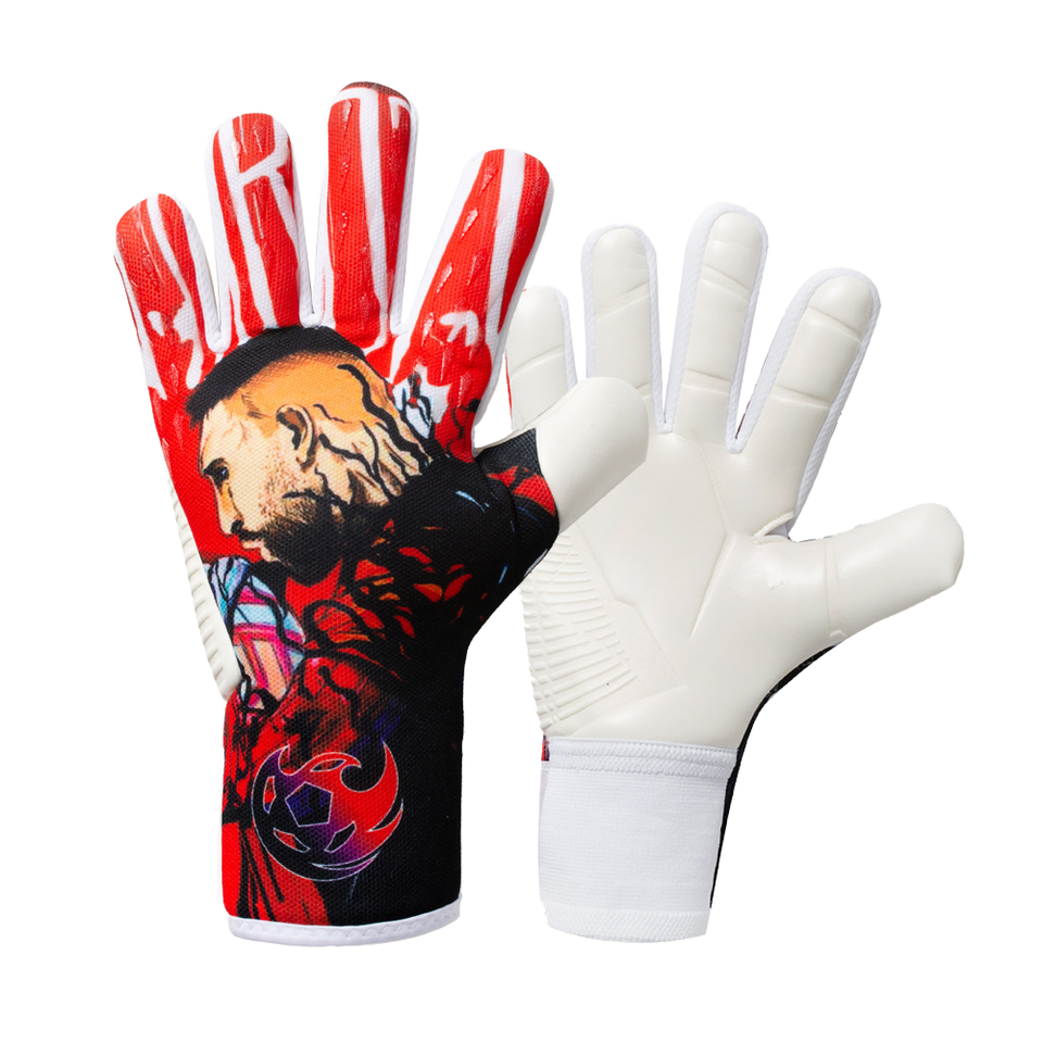 ถุงมือผู้รักษาประตูแบบเต็มนิ้ว ป้องกันการลื่น ทนทานต่อการสึกหรอ ปิดด้วยเชือกผูก ระบายอากาศได้ดี ผลิตจากยาง PU หนา 4 มม. ป้องกันนิ้วมือ