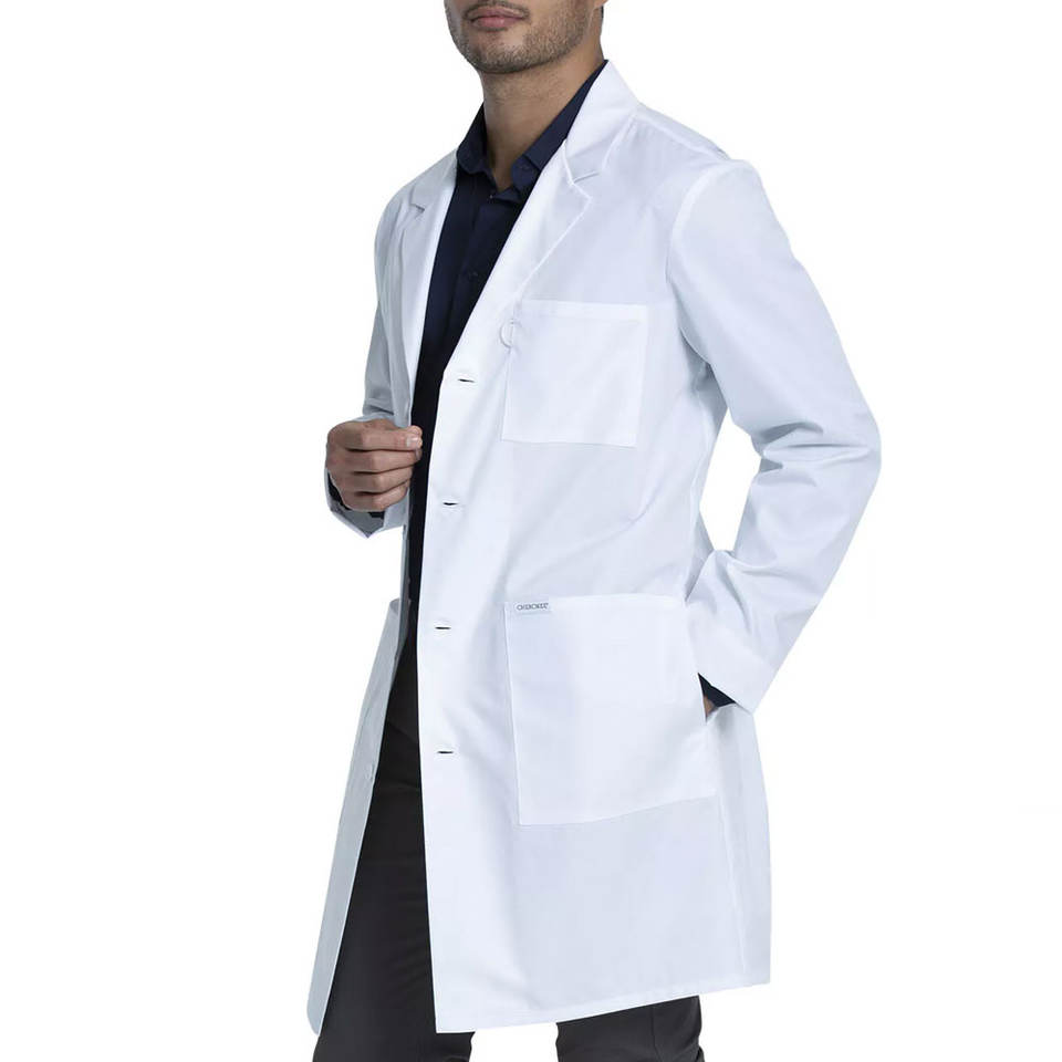 เสื้อโค้ทการทางการแพทย์สำหรับผู้ชายยาว4ปุ่มแบบมืออาชีพขนาด37"