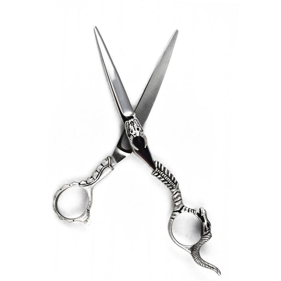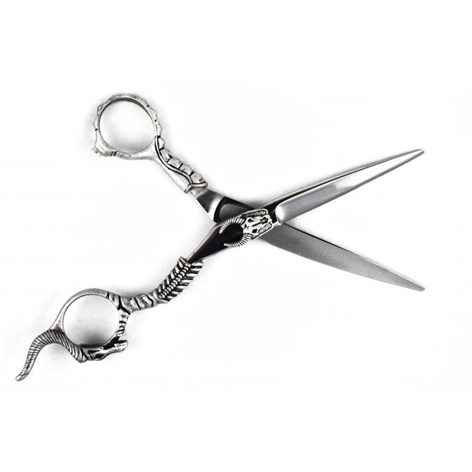 กรรไกรสแตนเลสมังกรแบบมืออาชีพจากเยอรมันด้ามจับมังกรที่วางนิ้วที่ปลายแหลมสีเงินมีสไตล์