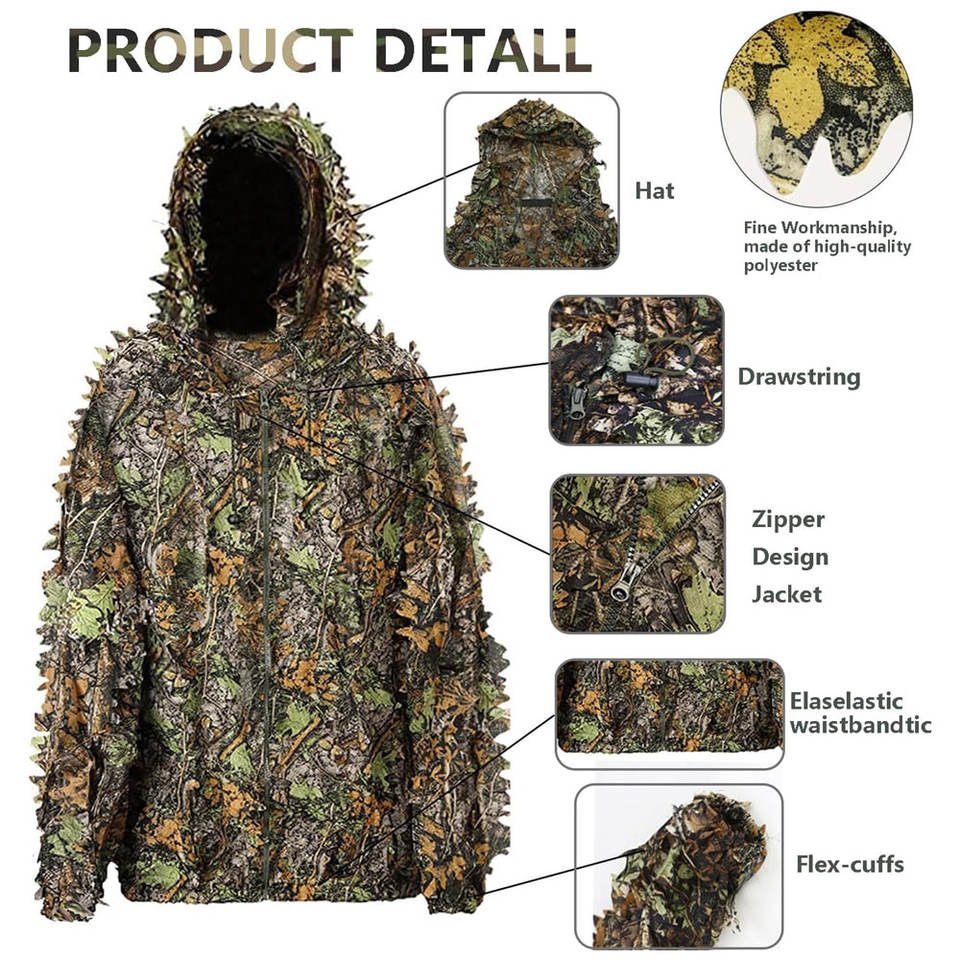 ชุดยุทธวิธีกันหนาวแบบ Ghillie สำหรับผู้ชาย ออกแบบโลโก้ได้ตามต้องการ ผลิตจากโพลีเอสเตอร์ 100% ระบายอากาศได้ดี กันลม
