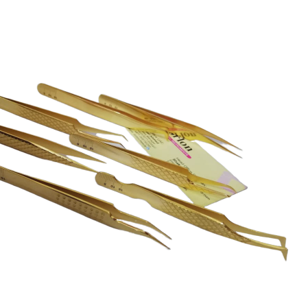 แหนบต่อขนตาเคลือบทองระดับมืออาชีพ แหนบต่อขนตาสแตนเลส แหนบต่อขนตาแบรนด์ส่วนตัว