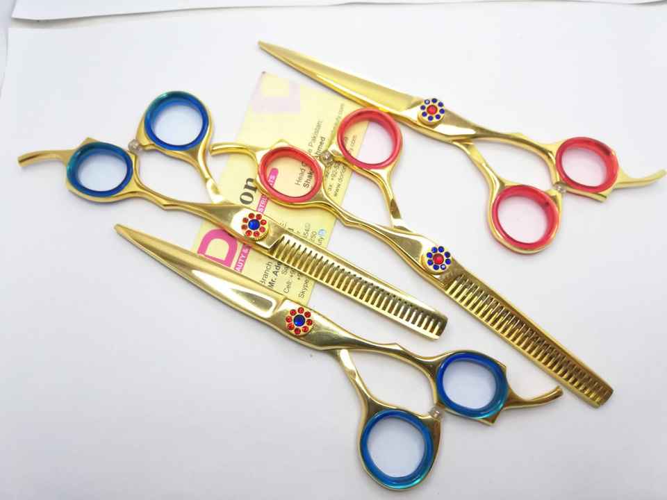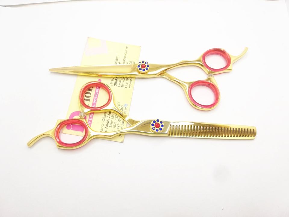 ชุดกรรไกรตัดผมสแตนเลสสำหรับช่างตัดผมกรรไกรตัดผมชุบทองแบบมืออาชีพ