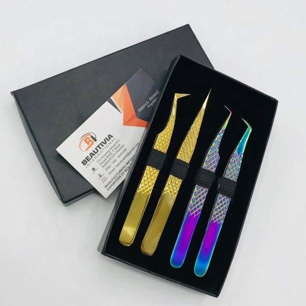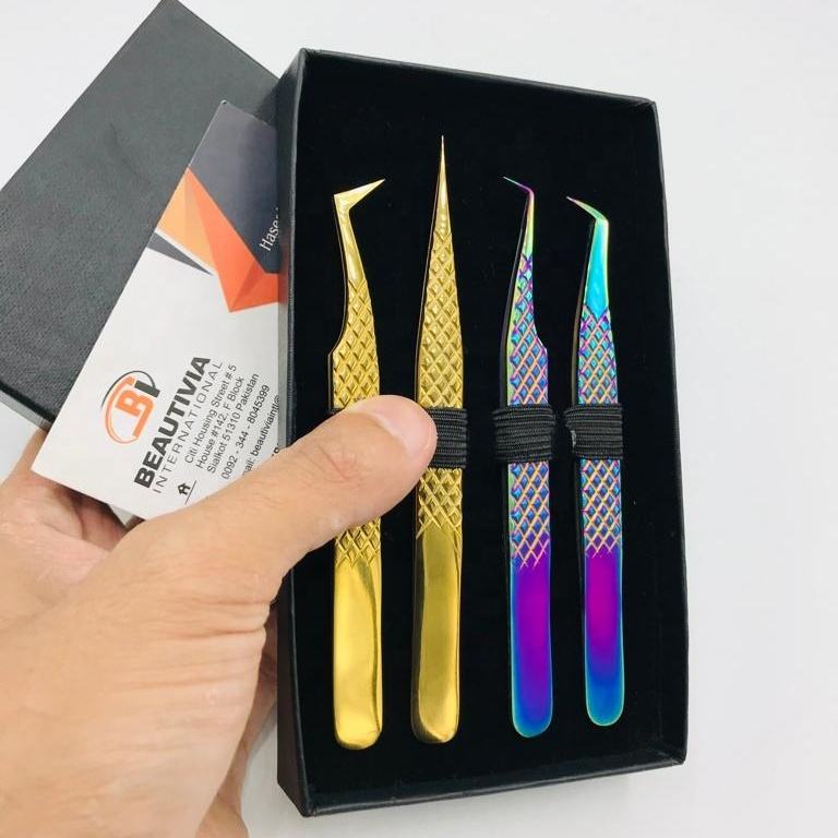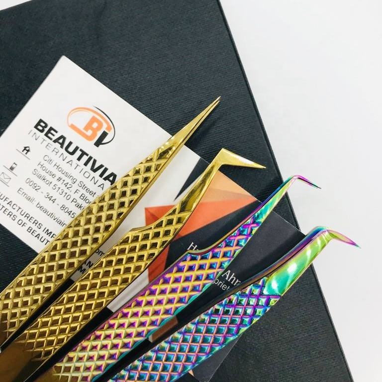 แหนบต่อขนตาแบบมืออาชีพ รุ่นโกลด์เรนโบว์พลาสมา สำหรับต่อขนตาแบบวอลลุ่ม ปลายแหลม ทำจากสแตนเลสสตีล ยี่ห้อ Beautivia
