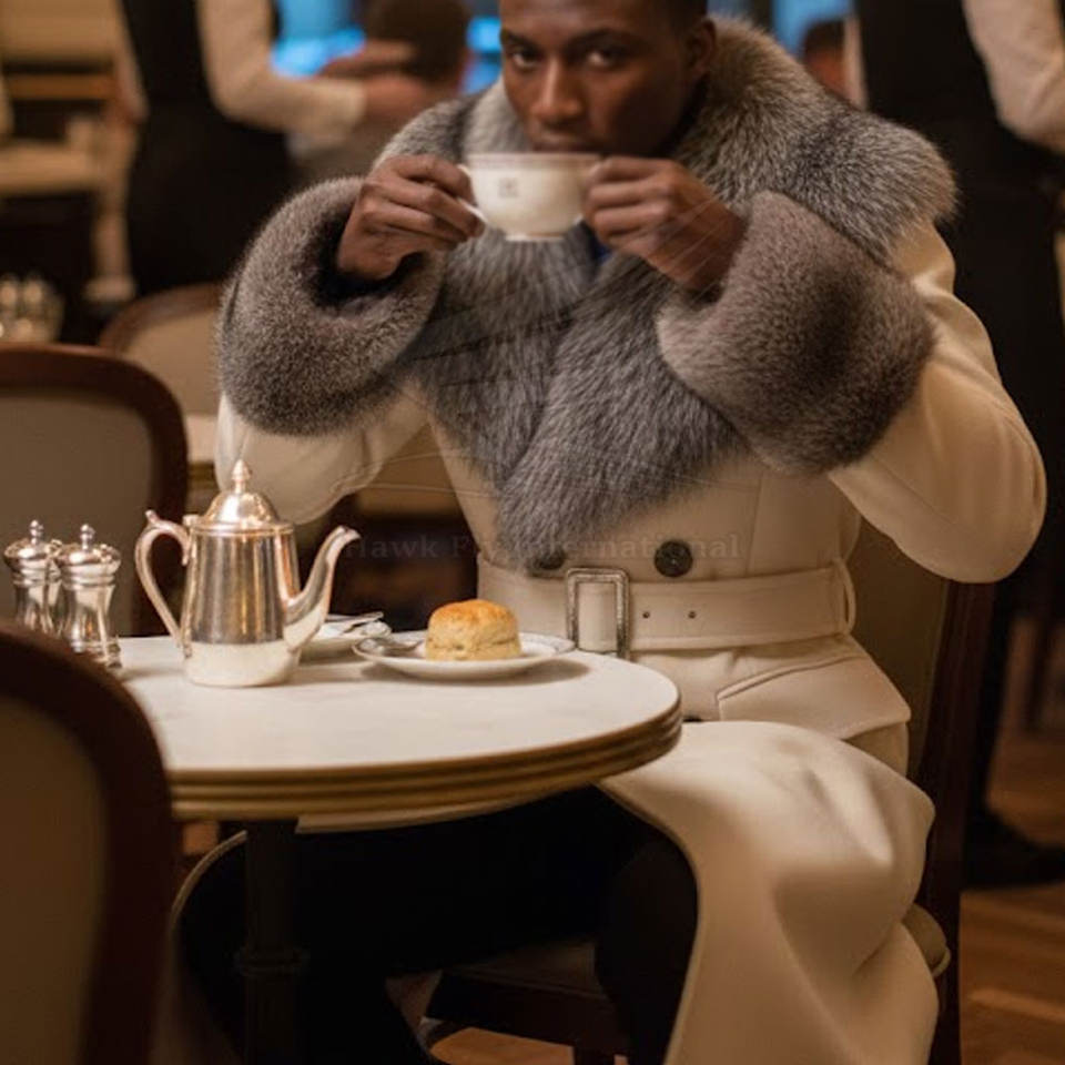 เสื้อโค้ทขนสัตว์คุณภาพระดับมืออาชีพ ผ้ามาตรฐานสำหรับผู้ชาย เสื้อโค้ทยาวบุฉนวนกันหนาว แต่งขอบขนสัตว์ ระบายอากาศได้ดี