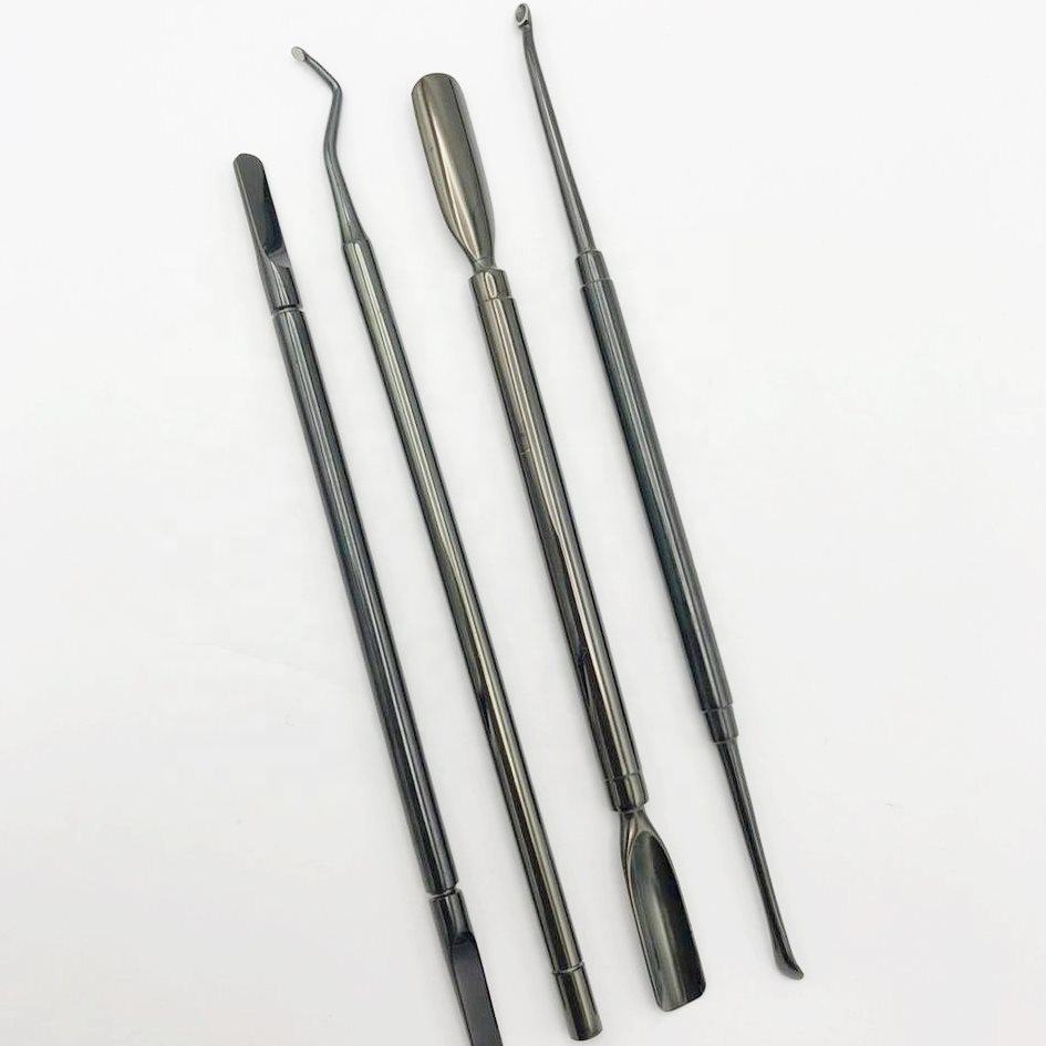 ที่ดันเล็บหนังกำพร้าสแตนเลสสองชั้นสำหรับมืออาชีพสีดำพลาสม่าคุณภาพสูงสำหรับใช้กับนิ้วมือ