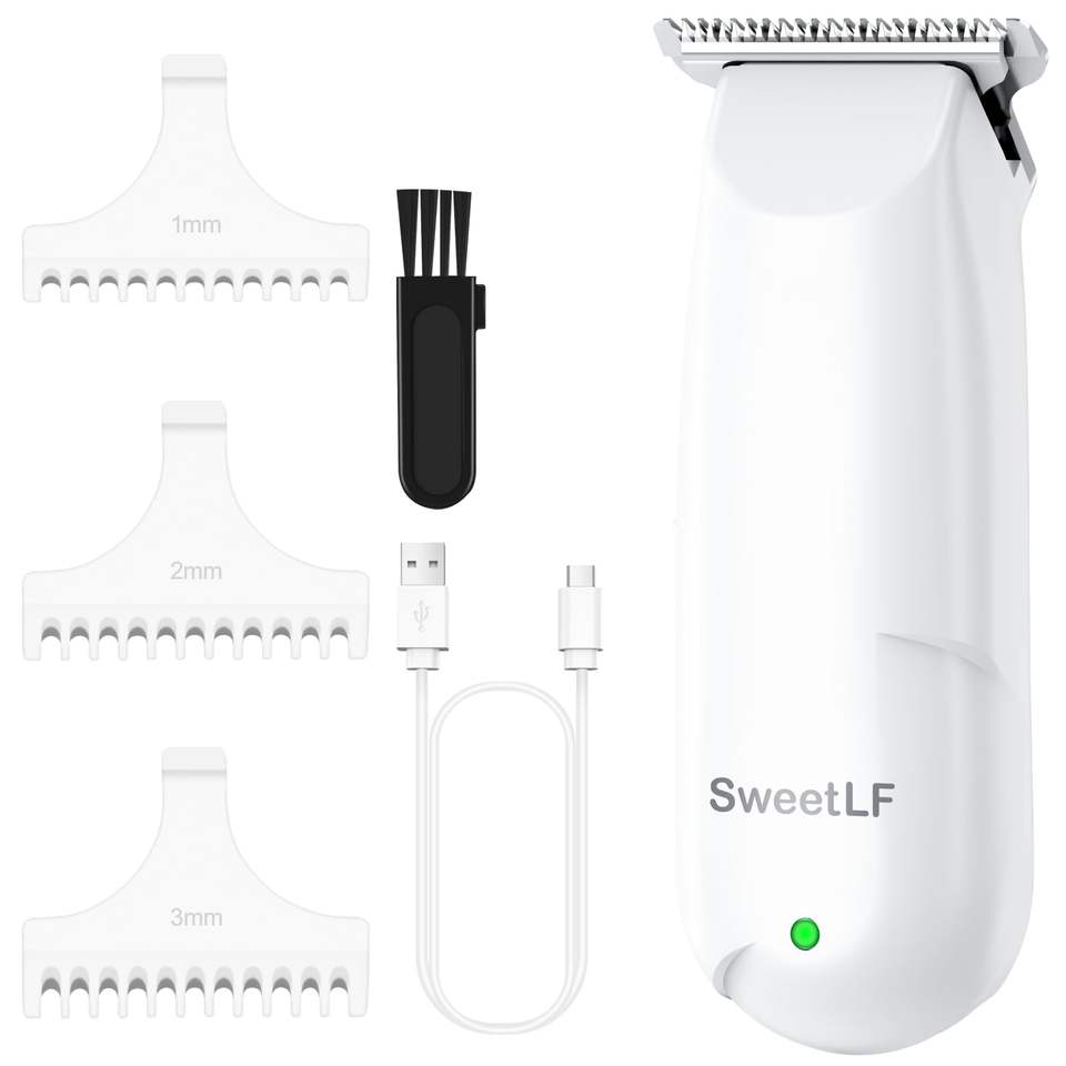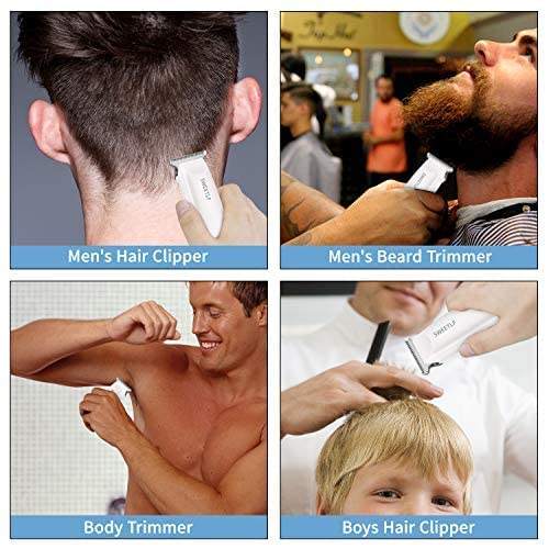 ปัตตาเลี่ยนตัดผมมืออาชีพ สีขาว สแตนเลส ใช้แบตเตอรี่ ชาร์จผ่าน USB ปรับระดับได้ ใช้ได้กับภาษาฝรั่งเศสและสเปน เหมาะสำหรับใช้ในบ้าน กันน้ำ