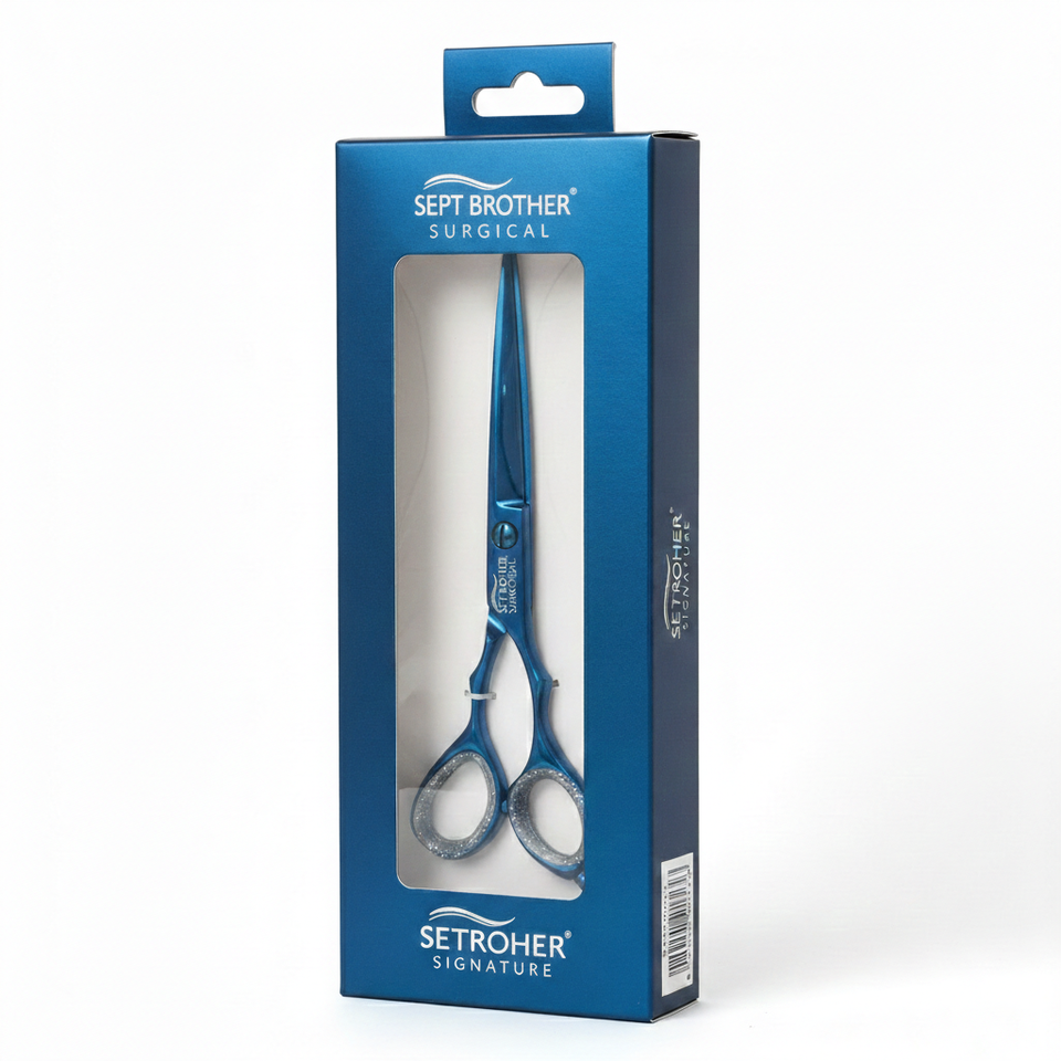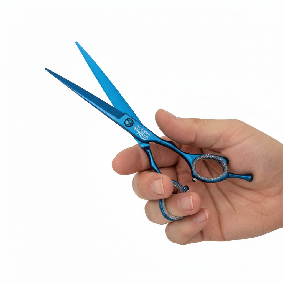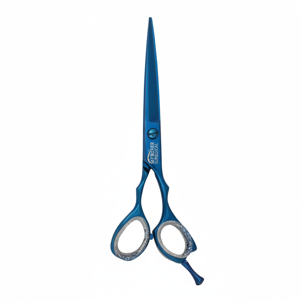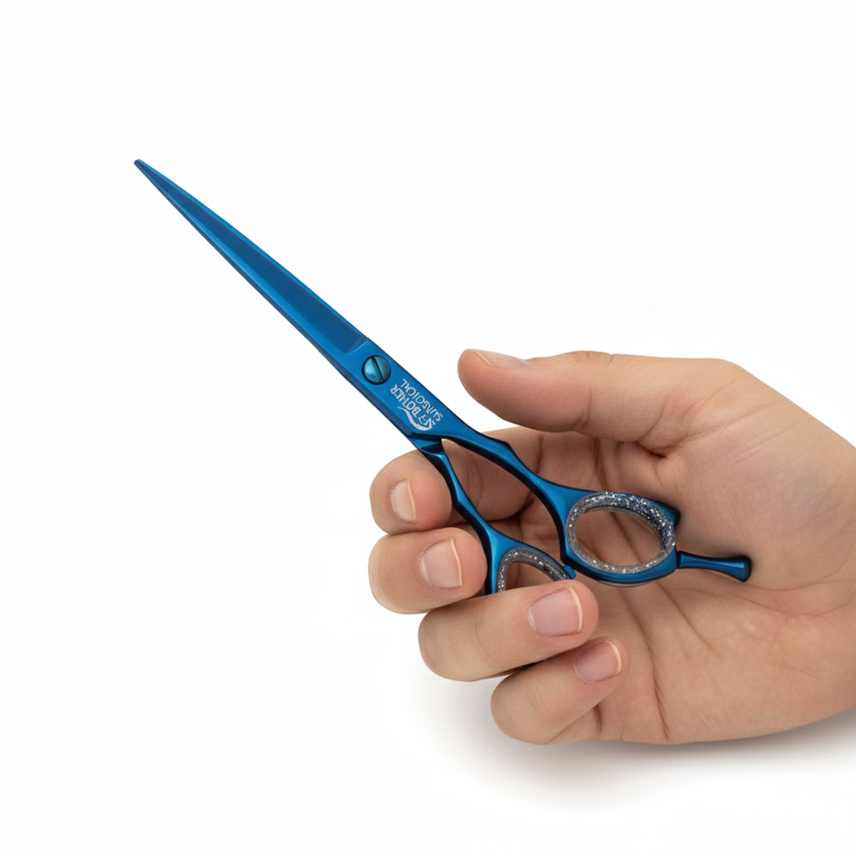 กรรไกรตัดผมมืออาชีพ กรรไกรตัดผมเคลือบไทเทเนียมสีน้ำเงิน อุปกรณ์สำหรับร้านเสริมสวย