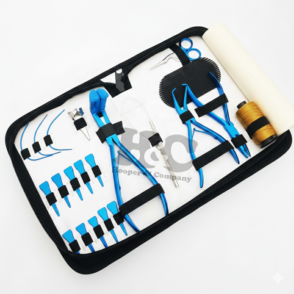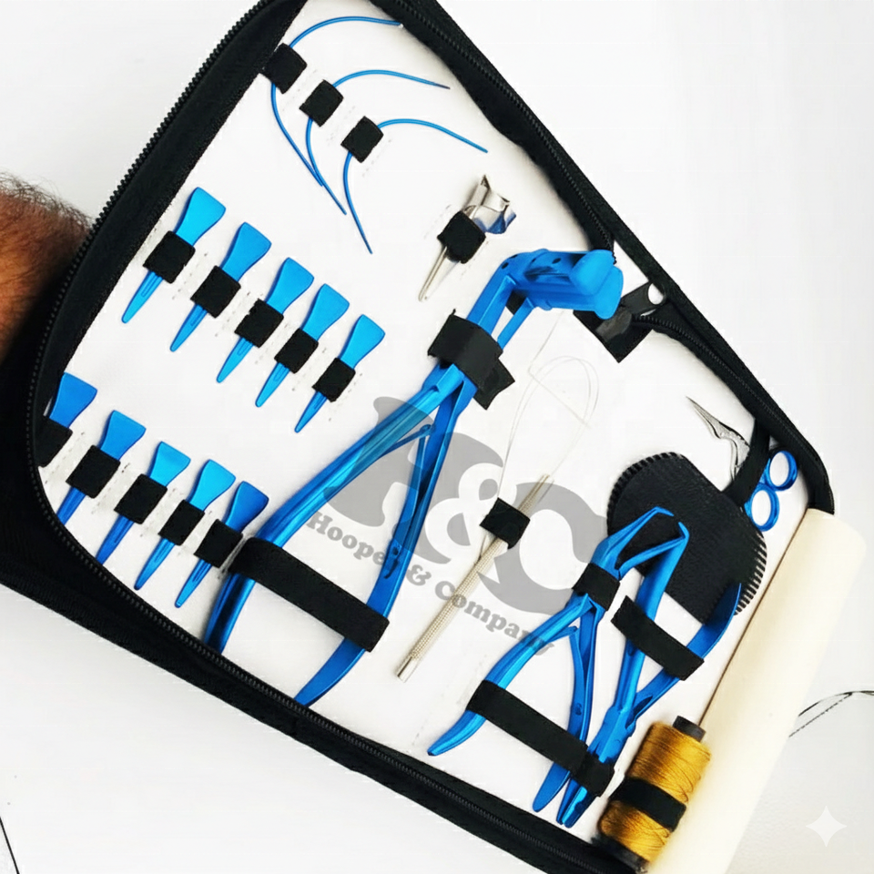 ชุดอุปกรณ์ต่อผมมืออาชีพ คีมต่อผมเกรดผ่าตัด สแตนเลสสตีล กรรไกรตัดไมโครบีด หวี คลิปหนีบผม กระเป๋าใส่ชุดอุปกรณ์ ฟรีโลโก้