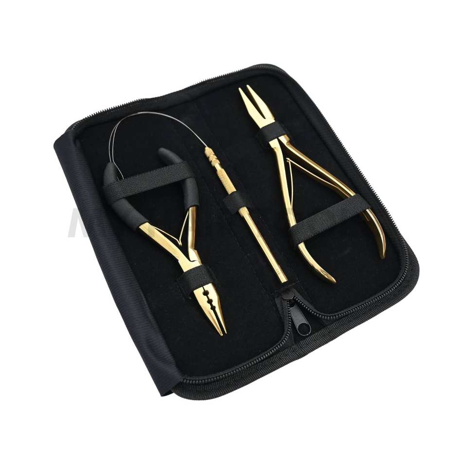 ชุดเครื่องมือต่อผมมืออาชีพ คีมจีบไมโครบีดสามรู ด้ามจับโฟม คีมจีบฟันแบน และอุปกรณ์ร้อยห่วง