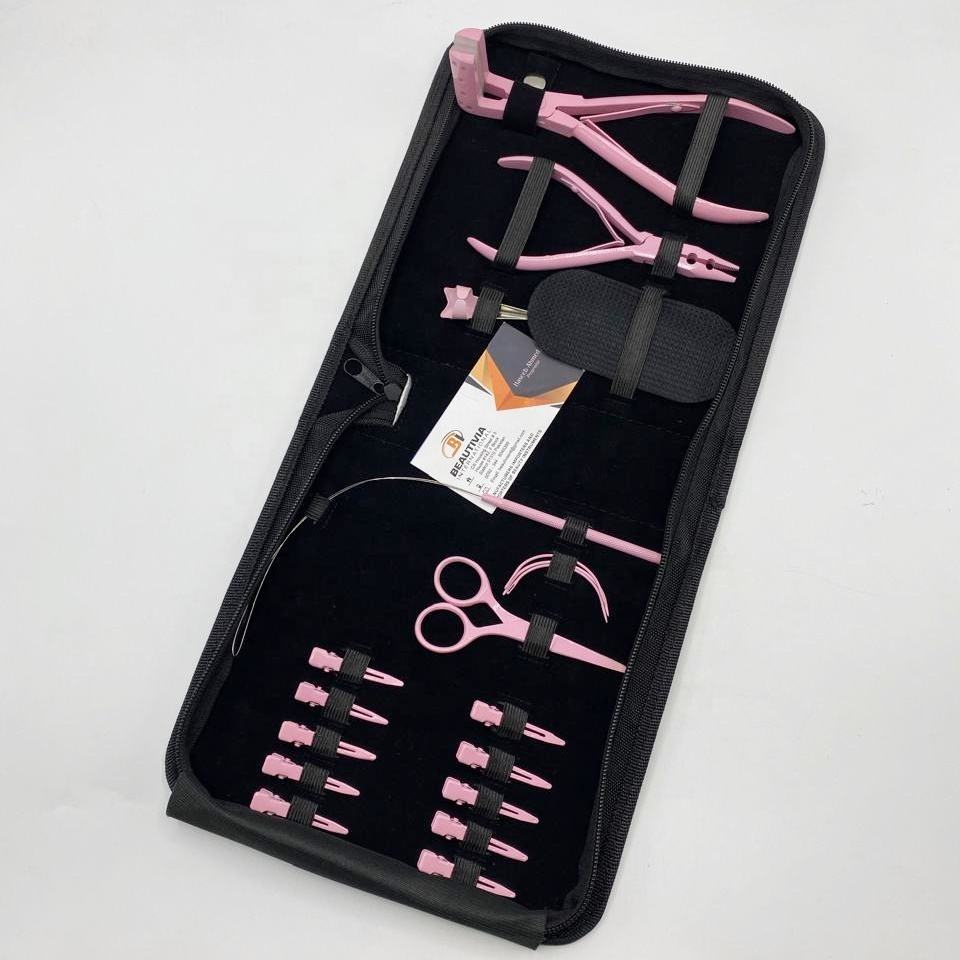 ชุดเครื่องมือต่อผมแบบมืออาชีพพร้อมคีม2รูสแตนเลสอย่างยั่งยืนและคีมกดเทปในโลโก้ที่กำหนดเอง