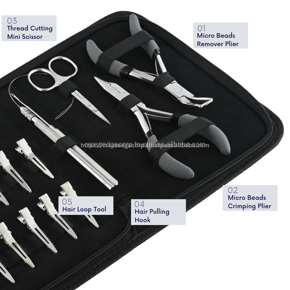 ชุดเครื่องมือต่อผมมืออาชีพกรรไกรขนาดเล็กและตะขอดึงเครื่องมือจัดแต่งทรงผมและคลิปแยกส่วนในราคาขายส่ง