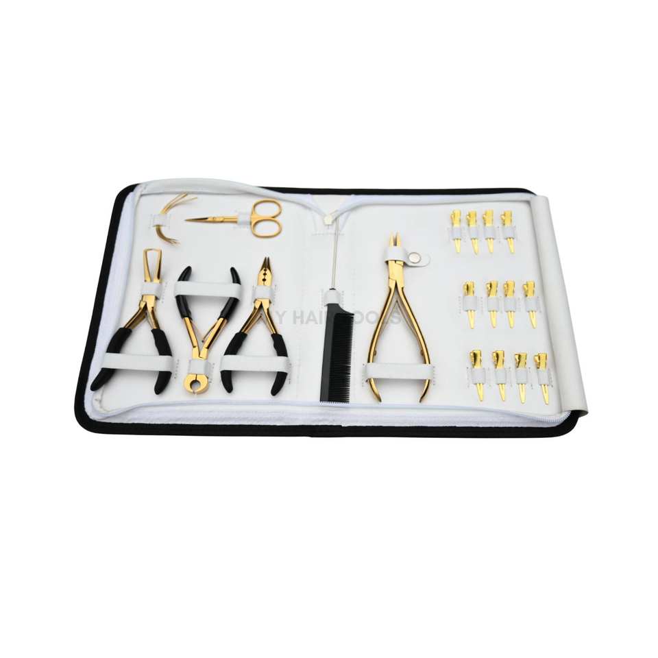 เครื่องมือต่อผมมืออาชีพ พร้อมคีมจีบไมโครบีดและคีมถอด คีมจีบแบบฟันแบน กรรไกรตัดผม หวี คลิป