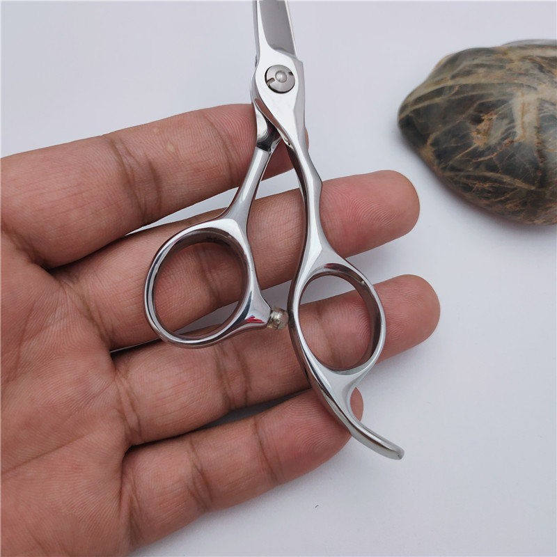 กรรไกรตัดผมมืออาชีพ 4.5 นิ้ว กรรไกรตัดผมแบบแบน สแตนเลสสตีล ด้ามจับสั้น เครื่องมือจัดแต่งทรงผมอย่างแม่นยำ