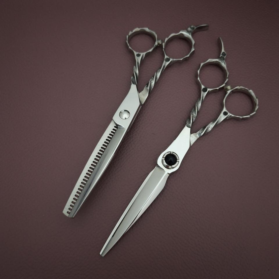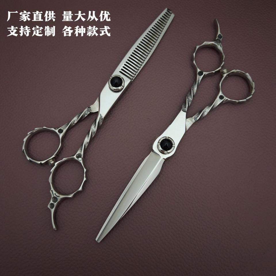 กรรไกรตัดผมมืออาชีพ 6 นิ้ว กรรไกรซอยผม สแตนเลส ใบมีดคม ด้ามยาว ดีไซน์สั่งทำพิเศษ