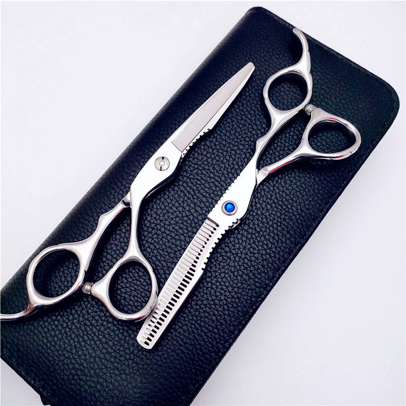 ชุดกรรไกรตัดผมมืออาชีพ สแตนเลสสตีล กรรไกรตัดตรง กรรไกรซอยผม ด้ามยาว ใบมีดคม สำหรับร้านตัดผม