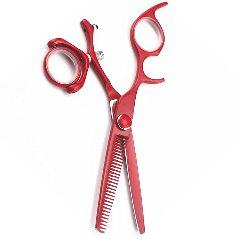 Professional Hair Thinning Scissors 5.5 Inch Red Color Coated Thinning Shear With Fix Finger Rest And Removable Ring