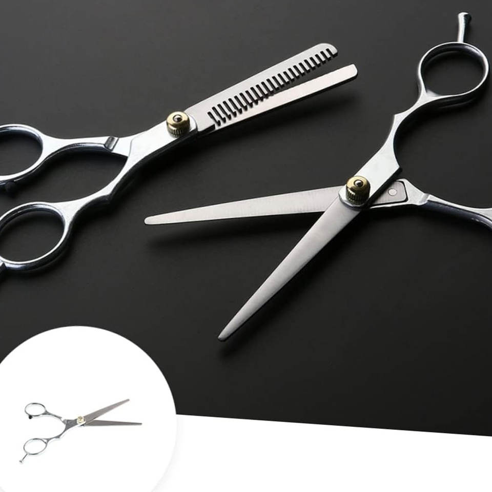 กรรไกรซอยบางสำหรับช่างตัดผมและผู้ชายทำจากสแตนเลสสีเงินใช้ตัดผมเกรดร้านเสริมสวย
