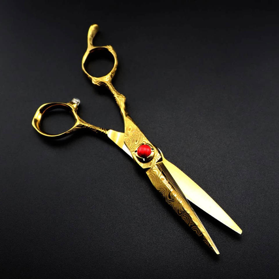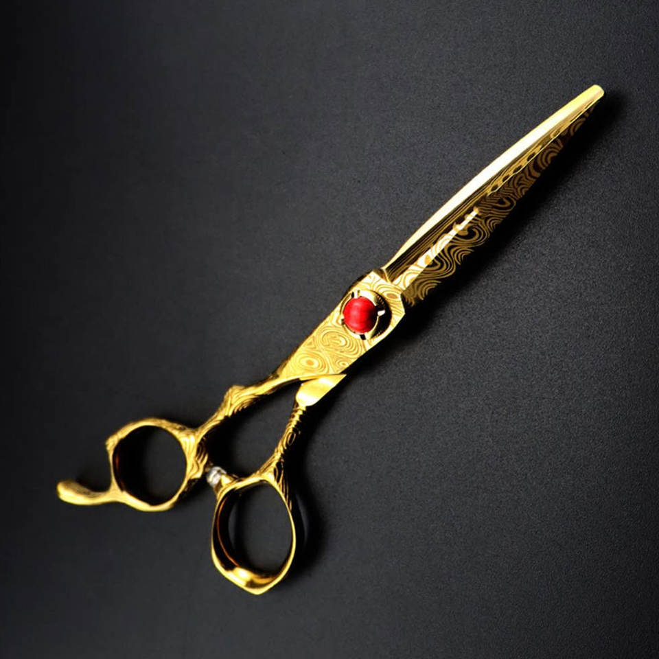 กรรไกรดามัสกัสสำหรับช่างทำผมมืออาชีพกรรไกรเล็มเคราทำจากสเตนเลสสตีลจากญี่ปุ่นติดฉลากส่วนตัว