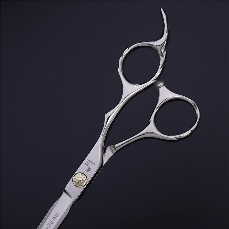 กรรไกรตัดผมมืออาชีพ 440C สแตนเลสสตีล Cr5.5 ใบมีดคม ด้ามจับขนาดกลาง ระดับซาลอน กรรไกรตัดผมแบบแบน สีเงิน