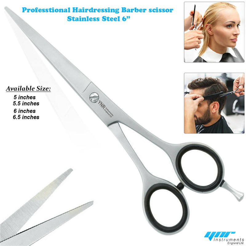 กรรไกรตัดผมมืออาชีพ สแตนเลส 440C หัวตรง ด้ามยาว อุปกรณ์เสริมสวยสำหรับร้านเสริมสวย