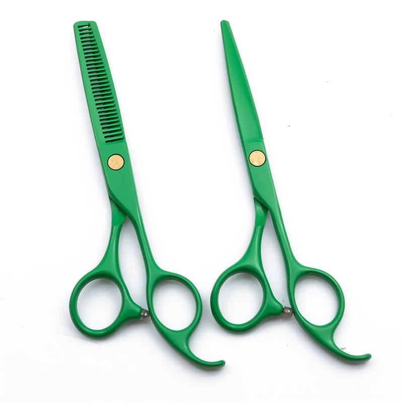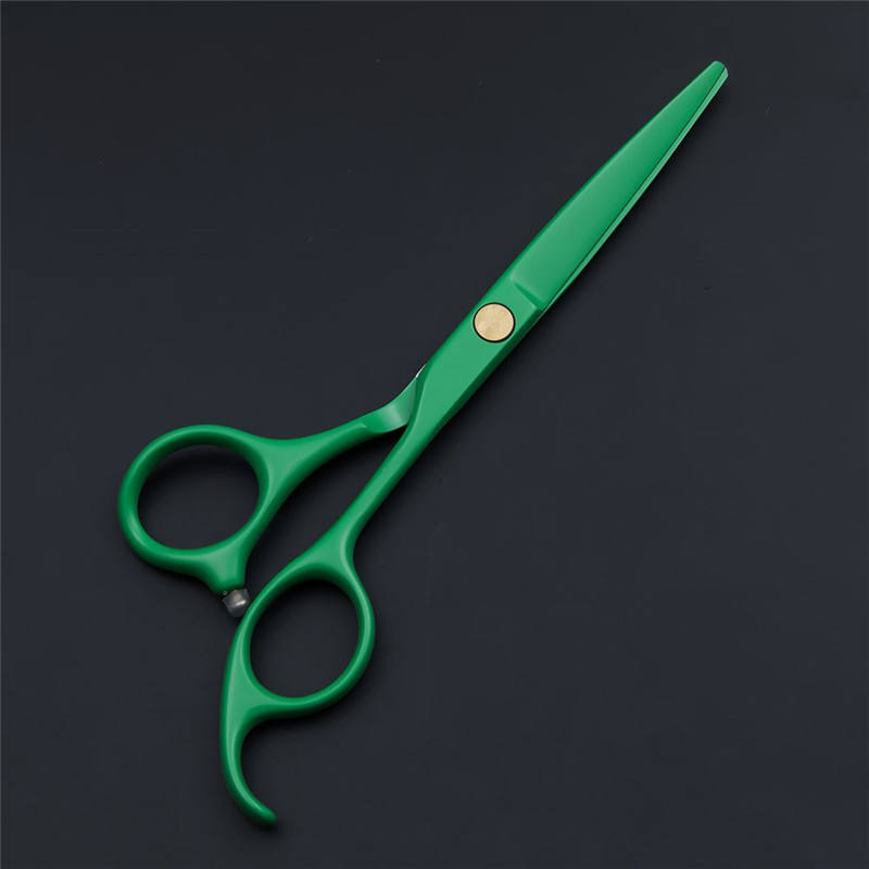 กรรไกรตัดผมมืออาชีพสแตนเลสใบมีดคมด้ามยาวสีเขียวเข้ม 6.0 นิ้วหัวตรงเครื่องมือเสริมความงาม
