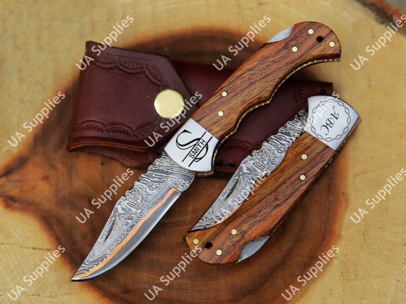 มีดพับทำมือระดับมืออาชีพ ด้ามไม้พะยูง เหล็กดามัสกัสทองแดง ปลายใบมีดแบบคลิปพอยต์ สำหรับพกพา ล่าสัตว์ ตั้งแคมป์ พร้อมปลอกมีดและอุปกรณ์ลับคม