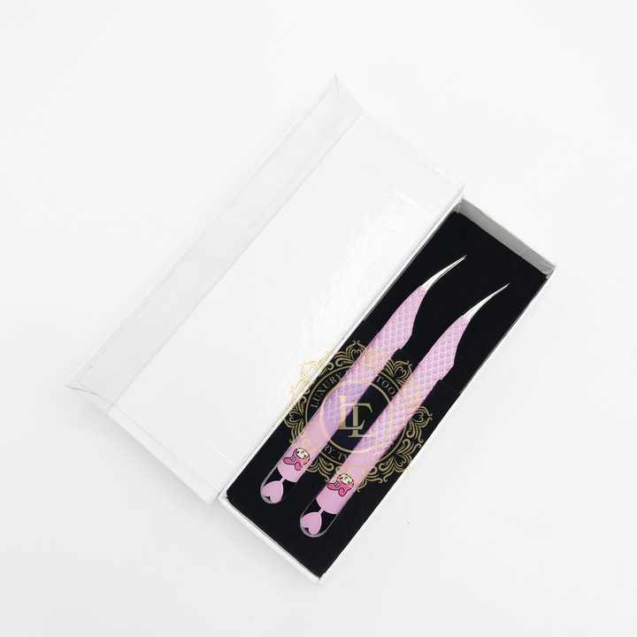 แหนบต่อขนตาปลอมทำจากสเตนเลสแบบมืออาชีพแหนบแยกกระดาษสีชมพูเคลือบด้วยกระดาษสีเงิน