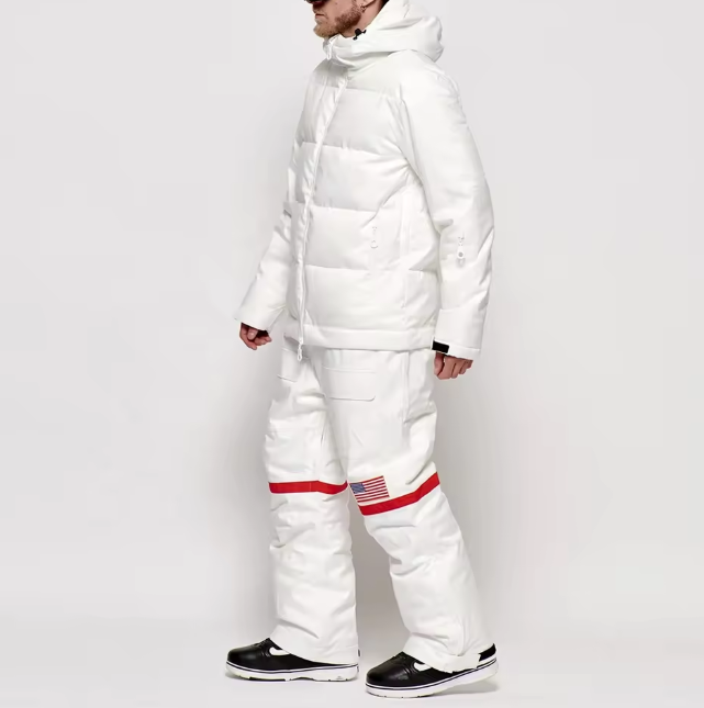 ชุดสกีแบบหนาพิเศษสำหรับผู้ชายและผู้หญิง พร้อมฮู้ดกันน้ำพิมพ์ลาย ระบายอากาศได้ดี 10,000 มม. เหมาะสำหรับกีฬาหิมะและกิจกรรมกลางแจ้ง