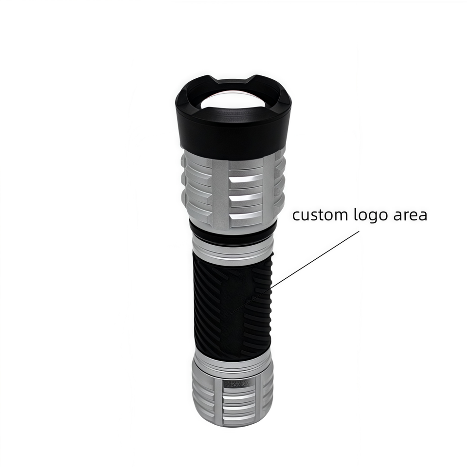 ไฟฉาย LED 6W สำหรับงานหนักมืออาชีพลำแสงซูมทนทานแบตเตอรี่ AAA โครงสร้างอลูมิเนียมอัลลอยสำหรับซ่อมตั้งแคมป์