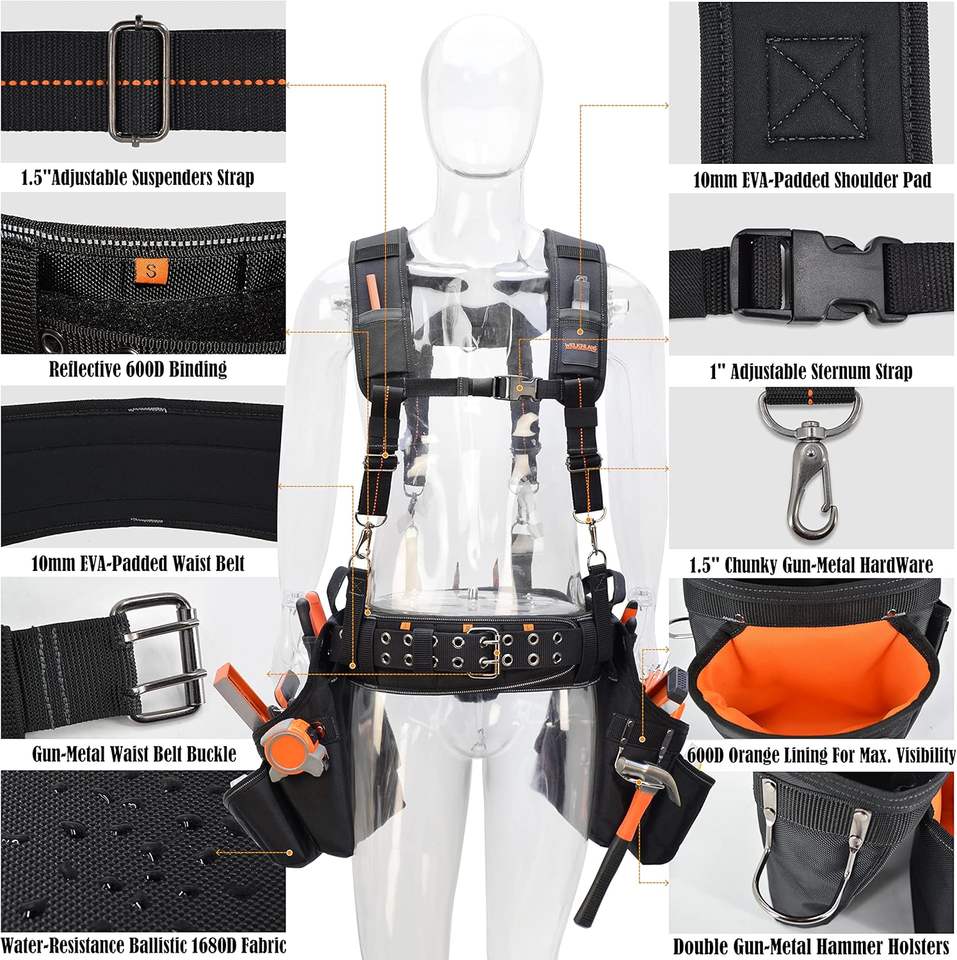 ชื่อสินค้า:กระเป๋าคาดเอวสำหรับช่างไม้และช่างไฟฟ้าแบบใช้งานหนัก พร้อมสายสะพาย