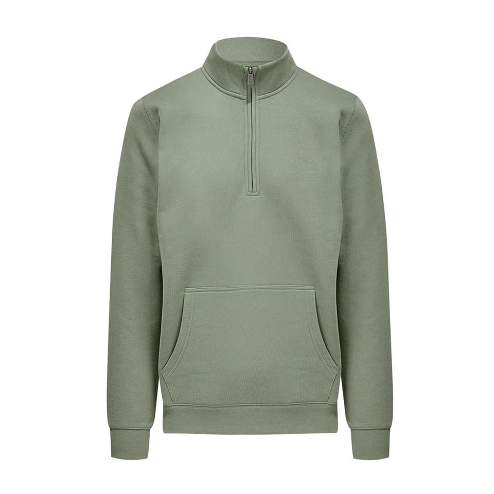 เสื้อสเวตเตอร์ซิปครึ่งตัวของผู้ชายเสื้อสเวตเชิ้ตผ้า340g ระบายอากาศได้ดีผลิตตามสั่งสำหรับฤดูหนาว