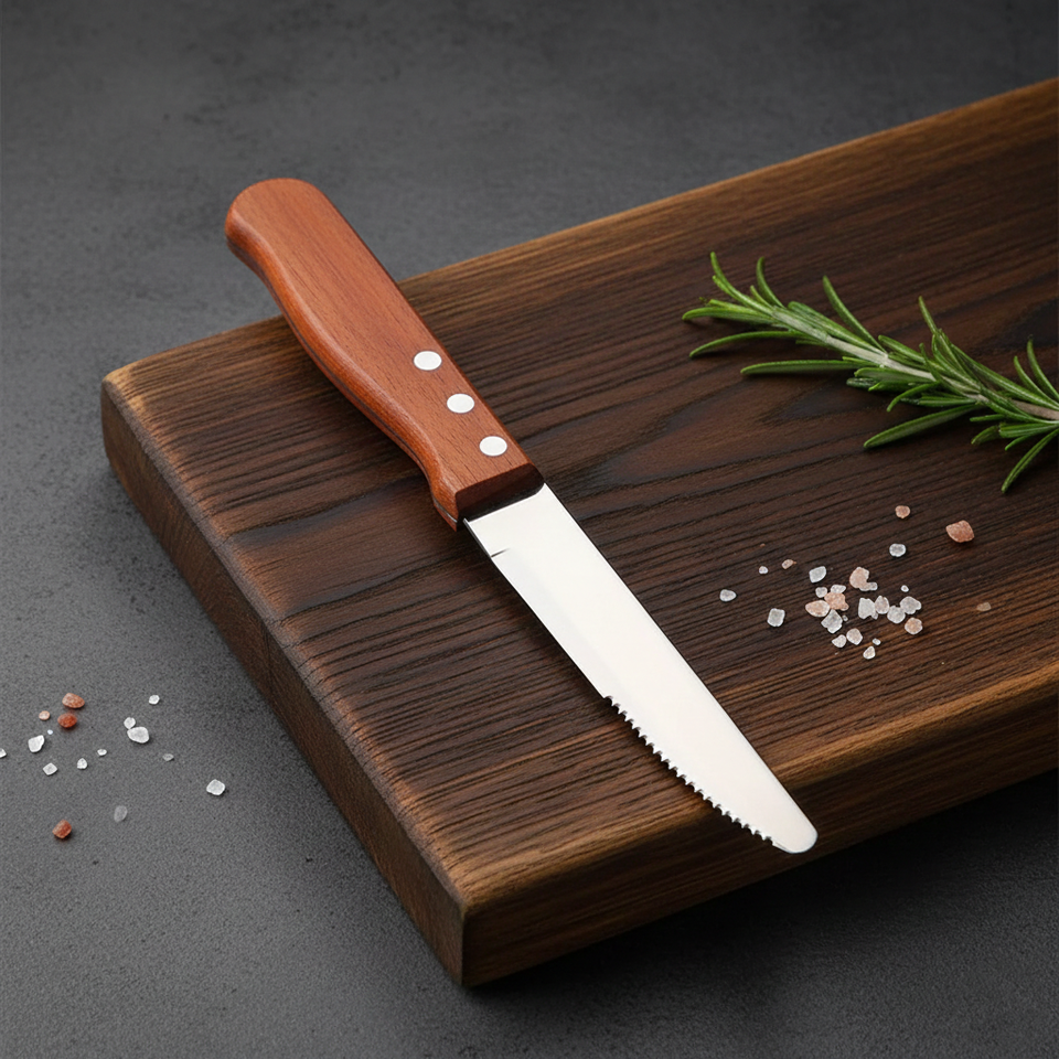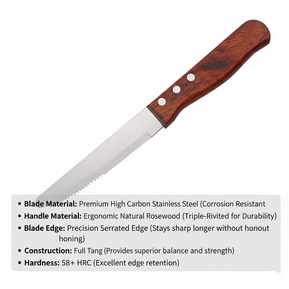 มีดสเต็กคุณภาพสูงระดับมืออาชีพ สำหรับร้านอาหารตะวันตก ใบมีดสแตนเลสแบบหยัก สำหรับเชฟ เป็นมิตรกับสิ่งแวดล้อม ทนทาน