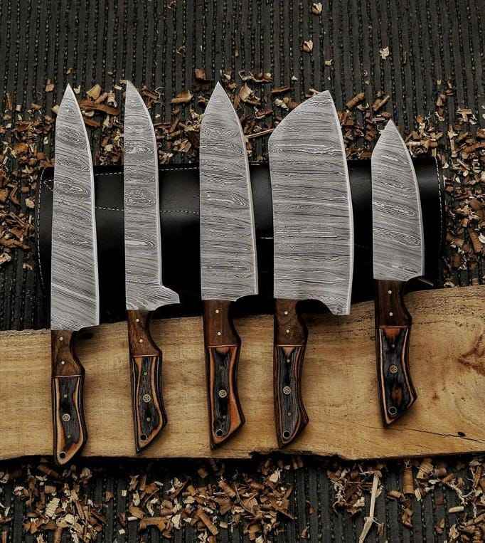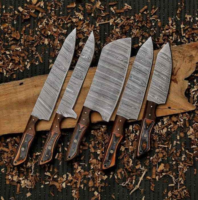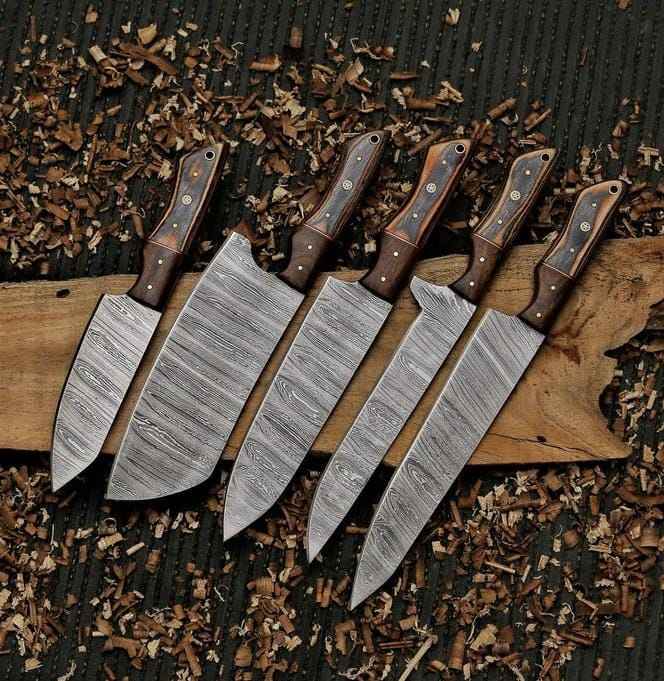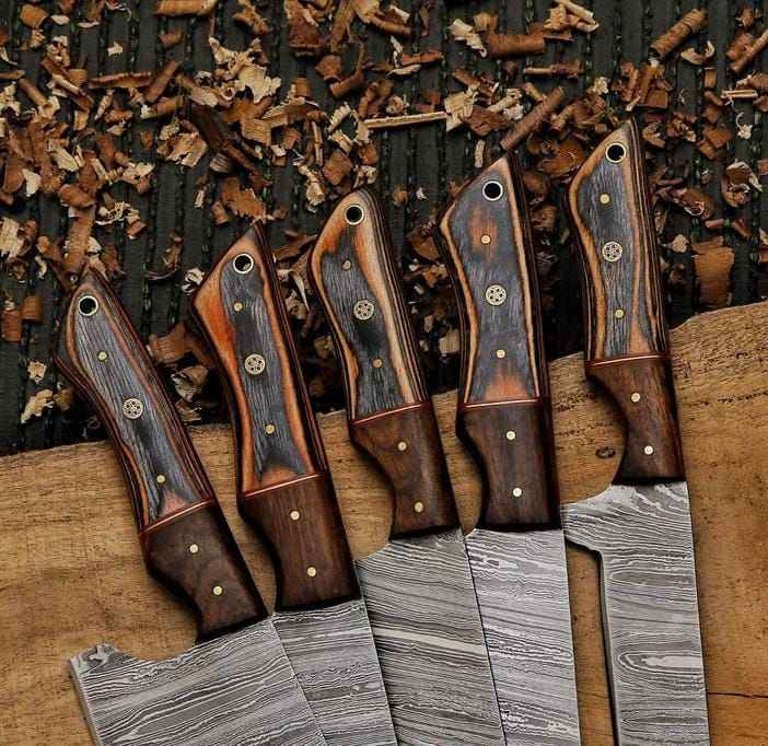 ชุดมีดทำครัวเหล็กดามัสกัสแบบปรับแต่งได้ชุดมีดทำครัวเหล็กห้าชิ้น