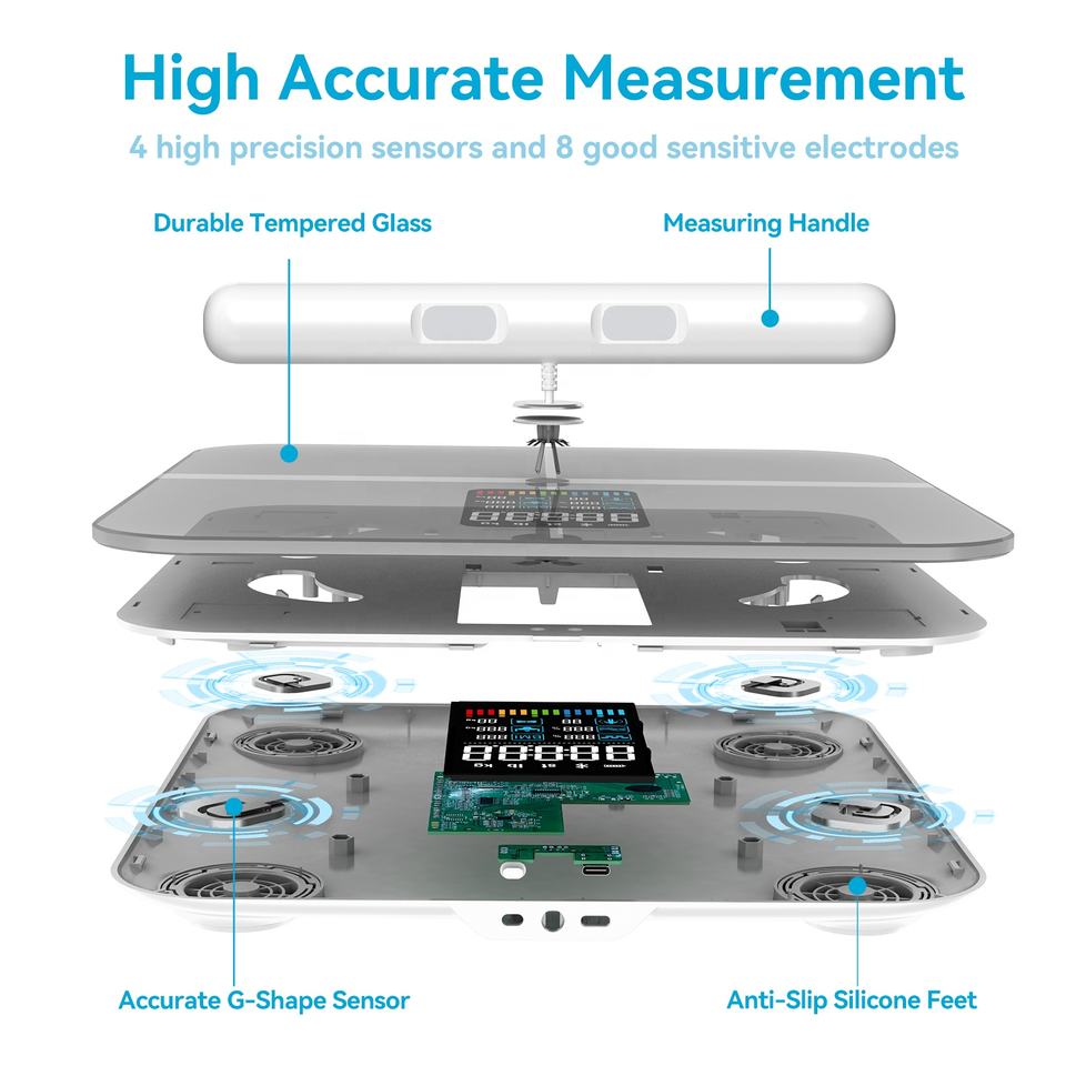 การรองรับฟังก์ชัน:เครื่องชั่งน้ำหนักวัดไขมันในร่างกาย 8 ขั้วไฟฟ้า หน้าจอ VA ขนาดใหญ่