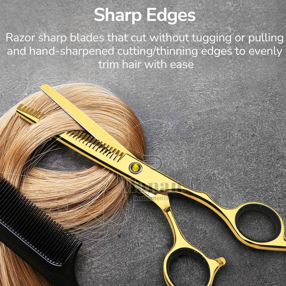 กรรไกรซอยผมมืออาชีพคุณภาพสูง สแตนเลส 4CR คมกริบ สำหรับคนถนัดขวา แบบไม่พับได้ 32 ฟัน ด้ามจับขนาดกลาง